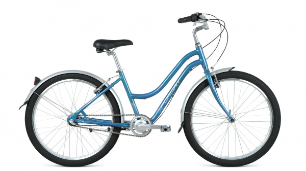 Комфортабельный женский велосипед с оборудованием планетарного типа Shimano, 3 скорости. Технические особенности: алюминиевая рама Woman/City, жесткая стальная вилка, двойные обода Weinmann XTB26, надежные ободные тормоза Tektro TX-125L, длинные крылья, подножка, защита цепи. Подходит для прогулочного катания в городских условиях и по несложным маршрутам в лесу.