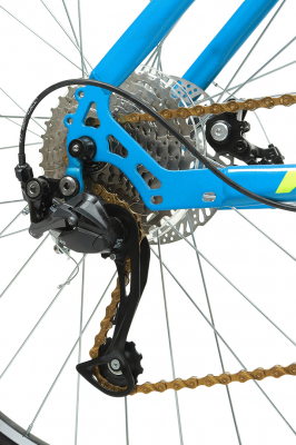 Горный велосипед оборудованием начального любительского класса Shimano, 9 скоростей. Технические особенности: прочная стальная рама, стальная амортизационная вилка FWD 286, двойные алюминиевые обода дисковые механические тормоза Clarks CMD-21, подножка. Подходит для прогулочной езды по шоссе и несложной пересеченной местности.
