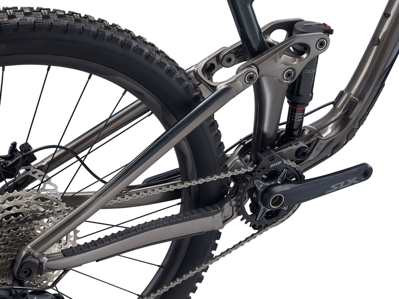Велосипед оснащен уникальной системой задней подвески Maestro с ходом 146 мм. Она представляет собой четырехрычажную конструкцию, оснащенную карбоновыми линками с промышленными подшипниками вместо втулок скольжения. Это значительно повышает надежность и отзывчивость подвески, обеспечивая райдеру превосходный контроль и комфорт на длительных спусках.
