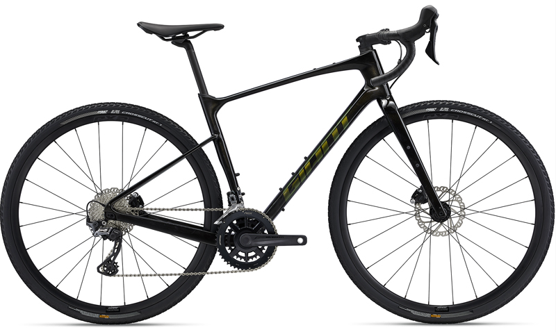 Гравийный велосипед с оборудованием любительского класса Shimano, 12 скоростей. Технические особенности: карбоновая рама Advanced-grade composite, жесткая карбоновая вилка Advanced-Grade Composite, двойные обода Giant P-X2, дисковые гидравлические тормоза Shimano GRX RX-410. Подходит для активной езды по различным дорогам и пересеченной местности.