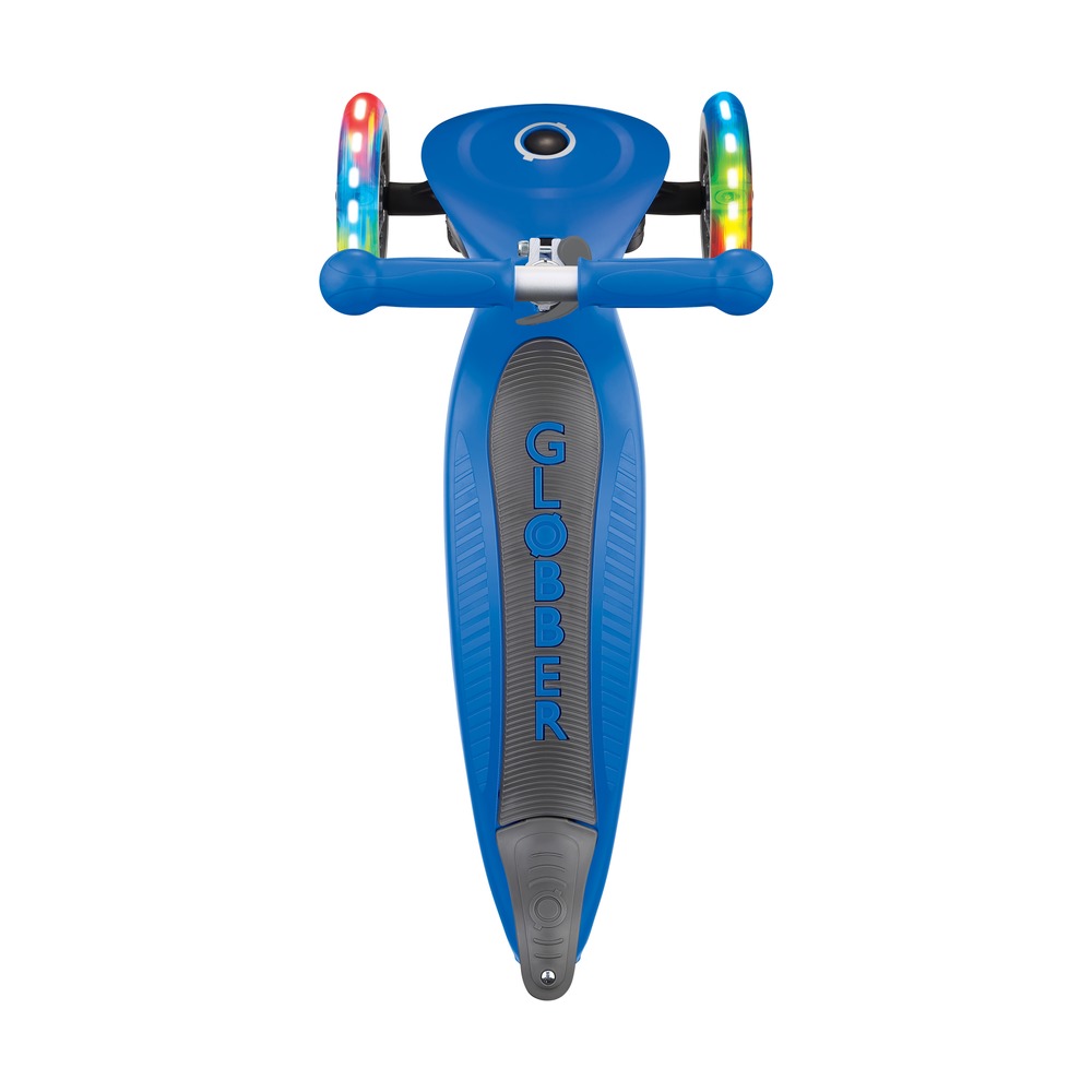 Поворот осуществляется посредством наклона руля. Чтобы заблокировать поворот колес самоката, нужно нажать кнопку на передней панели самоката, как показано на изображении справа. Для разблокировки нужно нажать кнопку с внутренней стороны передней панели.