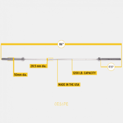 Гриф олимпийский прямой 86", до 540 кг, хромированный (класс-BRONZE)