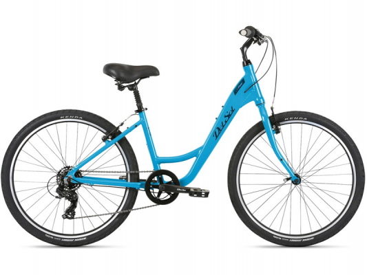 Комфортабельный женский велосипед с оборудованием начального класса Shimano, 7 скоростей. Технические особенности: алюминиевая рама Heat-treated 6061 aluminum, жесткая стальная вилка Steel, двойные обода Double-Wall Alloy, надежные ободные тормоза Alloy V-brakes, амортизированный подседельный штырь, комфортное седло. Подходит для комфортного катания в городских условиях и по несложным маршрутам в лесу.