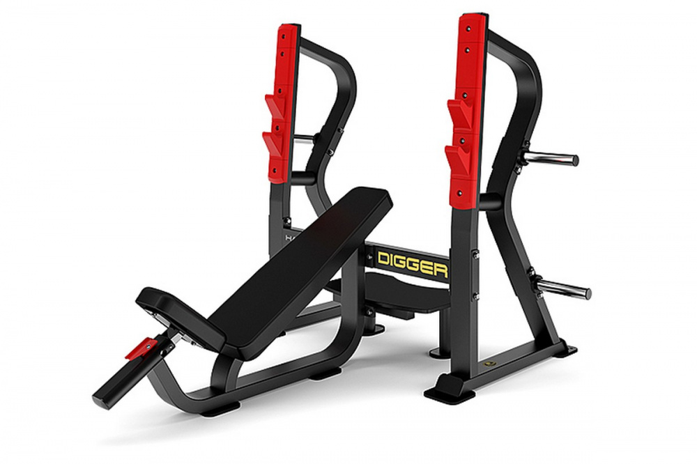Скамья для жима с положительным углом наклона Hasttings Digger HD027-5 имеет надежную и мощную конструкцию, рассчитанную на долгий срок эксплуатации. Тренажер идеально подходит для комплексной проработки мускулатуры рук, грудной клетки, спины. Назначение скамьи: проработка мышц груди, частично трицепсов и дельт. Скамья совмещена со стойками и имеет фиксированное наклонное положение. Регулятор сидения позволяет заниматься на тренажере людям с различными ростовыми данными.Мощная, устойчивая и прочная конструкция скамьи для жима гарантирует стабильность при выполнении упражнений. Подушка из ПВХ достаточно жесткая и экономит ваши усилия при выполнении упражнения, при этом она достаточно мягкая, чтобы вам было комфортно.Стойки скамьи для жима лежа специально созданы таким образом, чтобы прочно удерживать большой вес и при этом гарантировать комфорт атлетам разного роста. На них расположено 2 крюка под гриф на разной высоте. Стойки выполнены из прочной толстостенной трубы. В стойки вмонтированы адаптеры для хранения дисков.