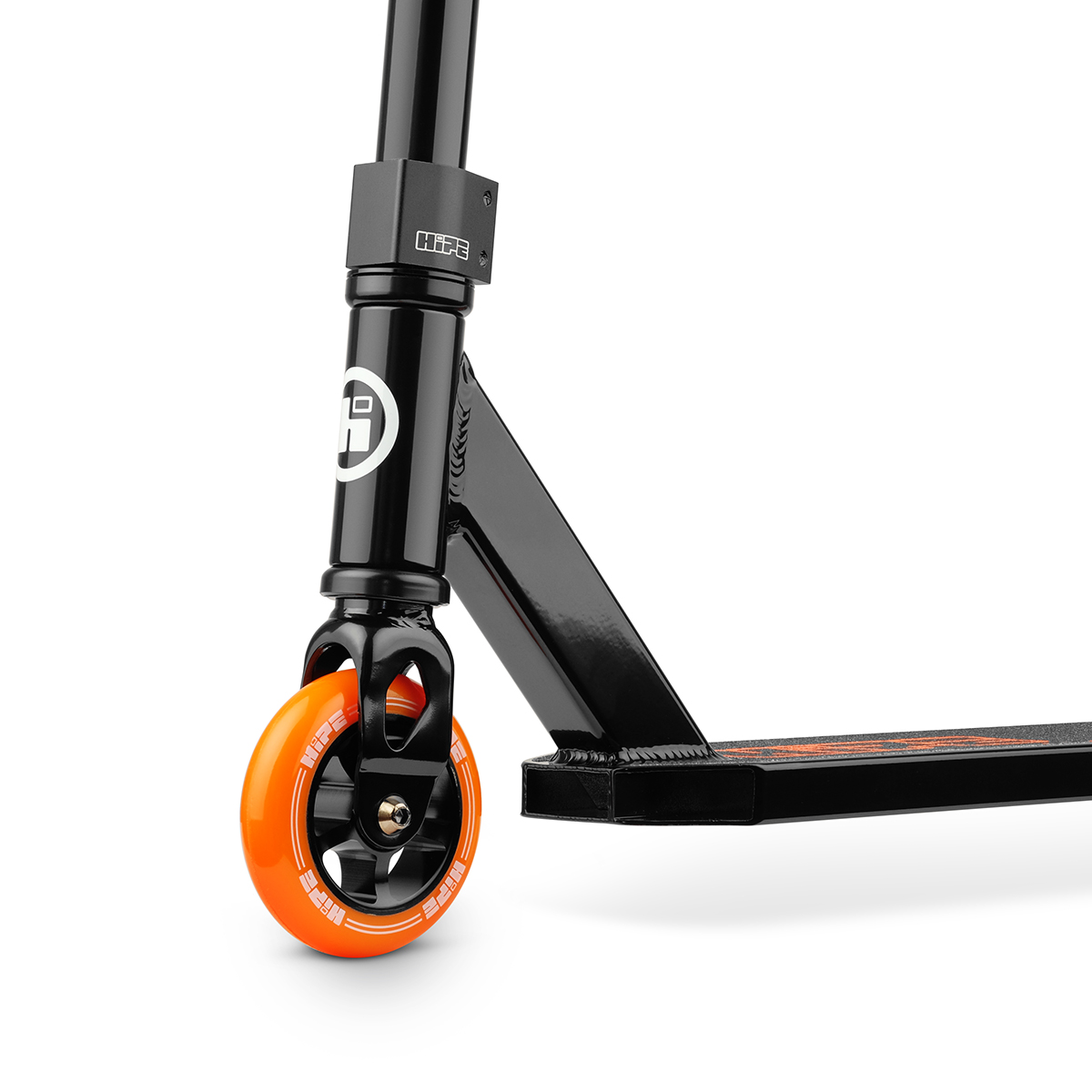Hipe H1 — модель для начинающих райдеров. Подойдёт в качестве первого трюкового самоката или может использоваться как обычный самокат вместо складных моделей. Использованы 100 мм колёса с металическим сердечником и компрессия IHC - всё как у взрослых моделей.
