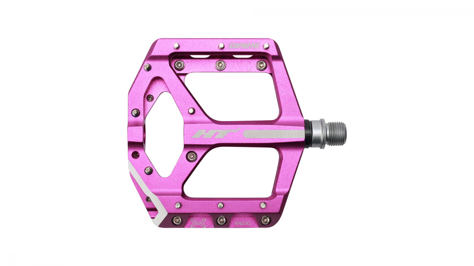 Педали HT ANS10 состоят из алюминиевой платформы и прочной оси из CrMo стали. Система подшипников EVO+ обладает долговечностью и надежностью, благодаря втулкам немецкого бренда IGUS и высококачественной смазке. Всё вместе это обеспечивает низкий вес, небольшую толщину и плавное вращение в любых условиях. Кроме того, педали оснащены 10 сменными шипами на каждую сторону.ОСОБЕННОСТИ:— Вес: 368 гр— Размер: 100 х 100 х 16.6 мм— Материал корпуса: экструдированный магний— Материал оси: CNC machined cr-moly— 20 шипов на педаль