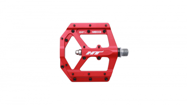 Педали HT ME03 созданы для ценителей максимальной надёжности и комфорта. За счет применения технологии EVO — эти педали станут для вас простыми и удобными в обсуживании. Они не требуют тщательного ухода, не прихотливы к грязи, а специально обработанный магниевый сплав на станках с ЧПУ препятствует коррозии. Всего 11 мм высоты профиля заметно снижают центр тяжести педали, что положительным образом сказывается на управляемости. А магниевая платформа, имеющая 10  сменных шипов на одну сторону, достаточно прочна, для того что бы выдержать удары камней, неизбежно возникающие во время катания по сложным участкам трасс. Отличный вариант для тех, кто выжимает все соки из своего велосипеда.
