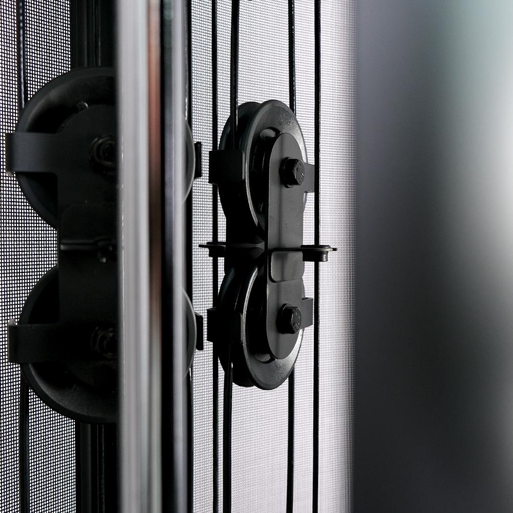 Два независимых весовых стека по 52 кг закрыты кожухом из сетчатого нейлона. На кожухе размещен информационный плакат с инструкцией по выполнению упражнений.