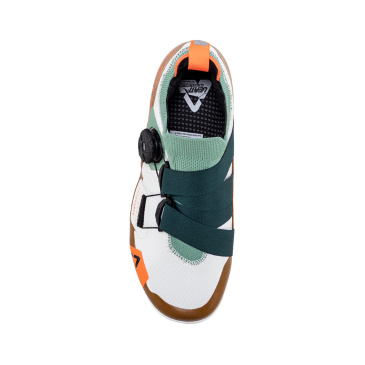 Leatt 8.0W Endurance ProClip Shoe — это профессиональная обувь для кросс-кантри и марафонских гонок, созданная при участии команды Speed Company, победителей Cape Epic 2022. Модель разработана для райдеров, которым важны максимальная эффективность педалирования, надёжная фиксация стопы и комфорт при длительных заездах.Верх выполнен из ультра-лёгкого материала RipStop с TPU-усилениями, обеспечивающими защиту и долговечность. Подошва из карбонизированного нейлона (20% углерод, 80% нейлон) сочетает жёсткость для эффективной передачи мощности и необходимую гибкость для комфорта. Резиновый компаунд RideGrip с агрессивным протектором гарантирует уверенное сцепление как на педалях, так и при ходьбе.Система шнуровки MOZ с D-образными кольцами обеспечивает быструю и точную настройку посадки даже на ходу, а эластичный «ноской» ворот создаёт эффект второй кожи, исключая давление на стопу. Для индивидуальной подгонки в комплекте идут две пары стелек: стандартной ширины и более широкие.Расширенные SPD-каналы позволяют точно настроить положение шипов, а направленный материал в зоне пятки предотвращает скольжение стопы.