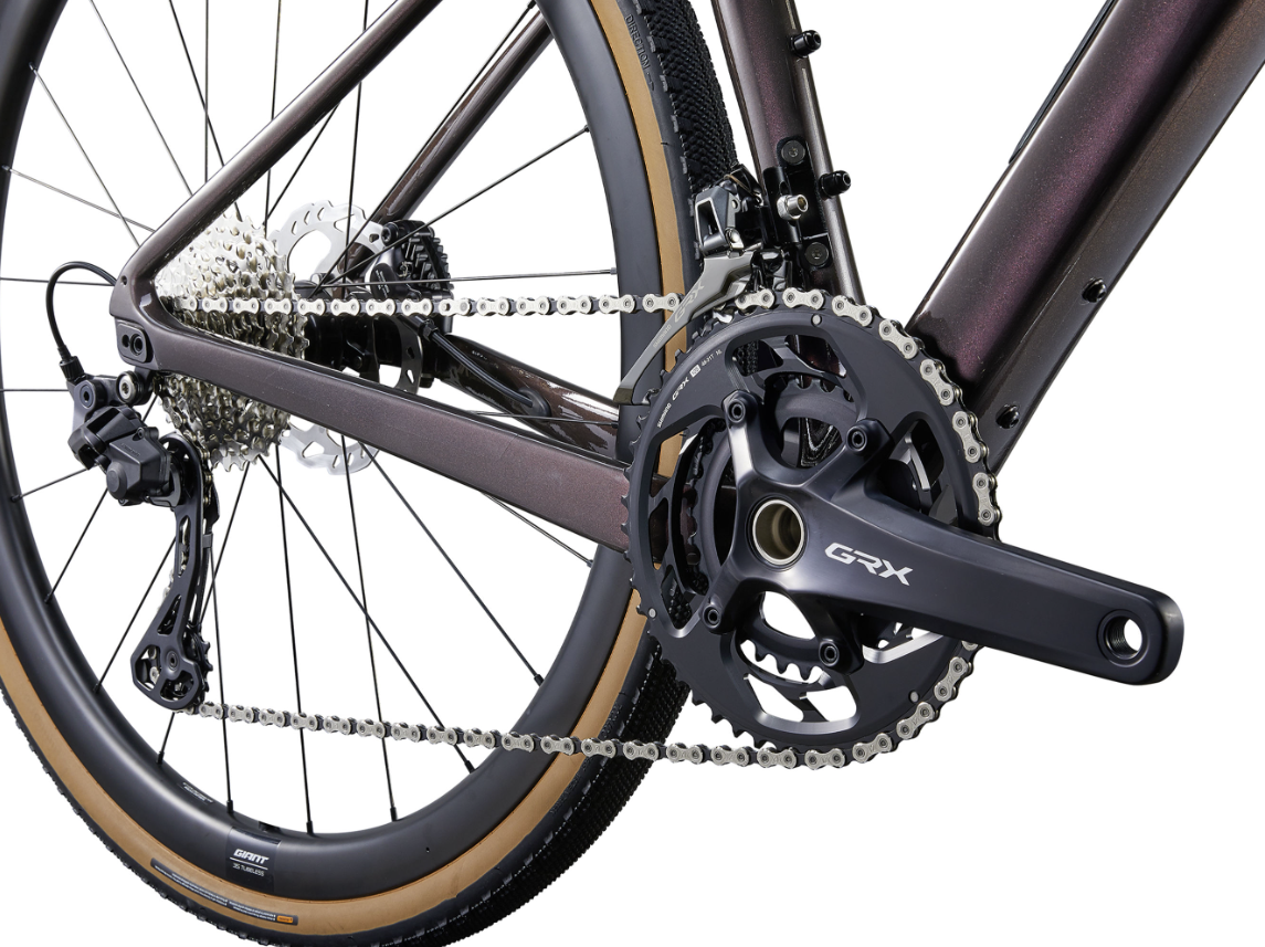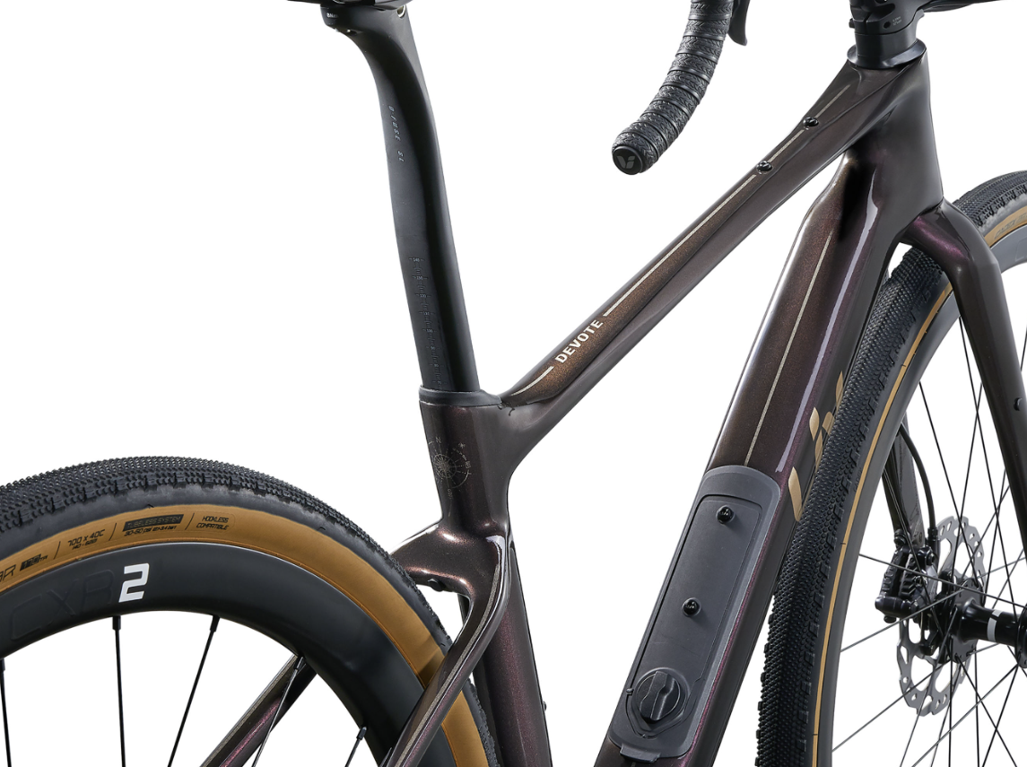 Advanced-grade composite, 12x142mm thru-axle, flat mount disc, flip chip – dropout, integrated down tube storage, integrated cable routing
