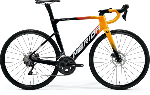 Шоссейный велосипед продвинутого уровня с оборудованием начального профессионального класса Shimano, 22 скорости. Технические особенности: карбоновая рама Reacto CF3 IV, жесткая вилка Merida Reacto CF5 IV, двойные обода Merida Expert CW, дисковые гидравлические тормоза Shimano 105. Подходит для быстрой спортивной езды по шоссе и участия в гонках.