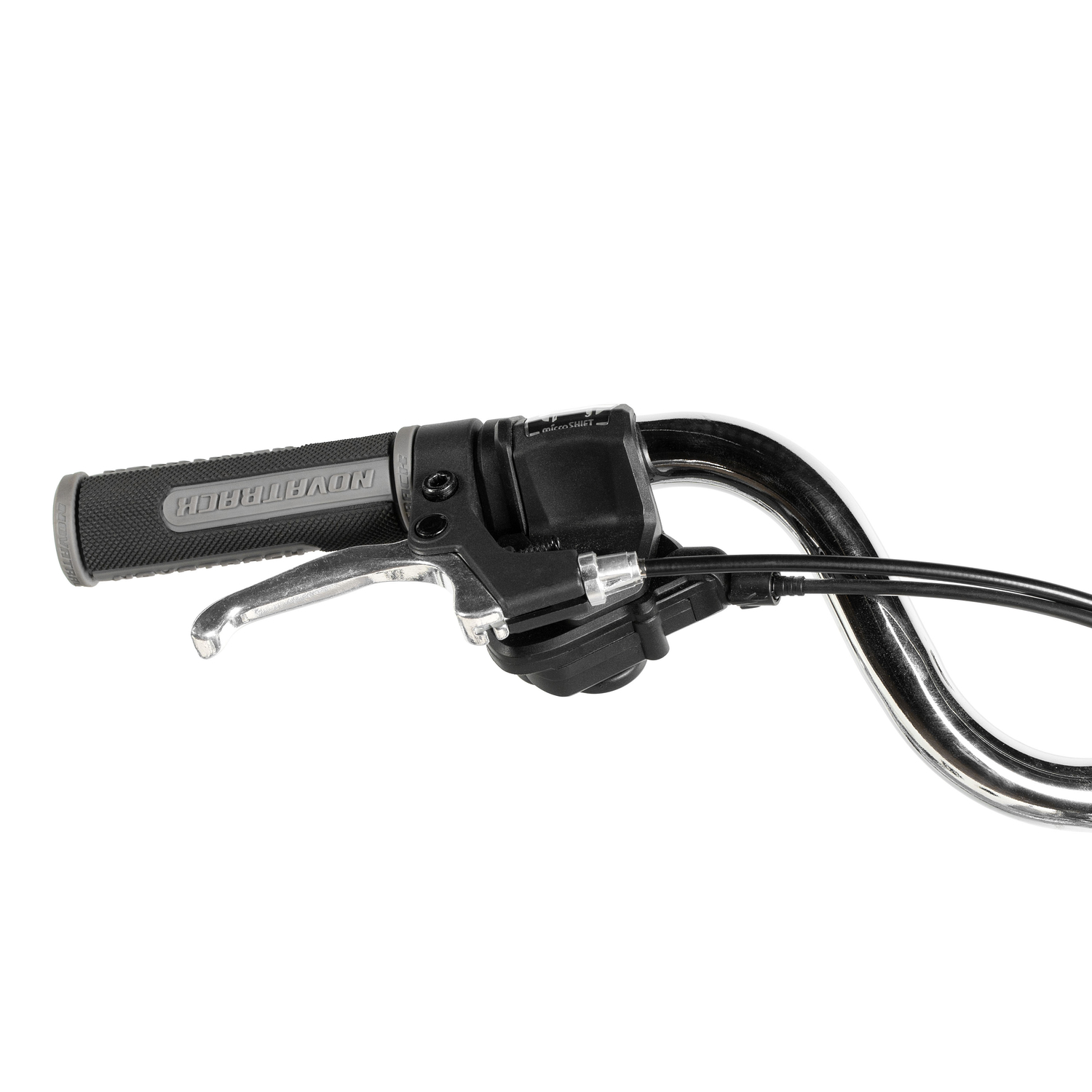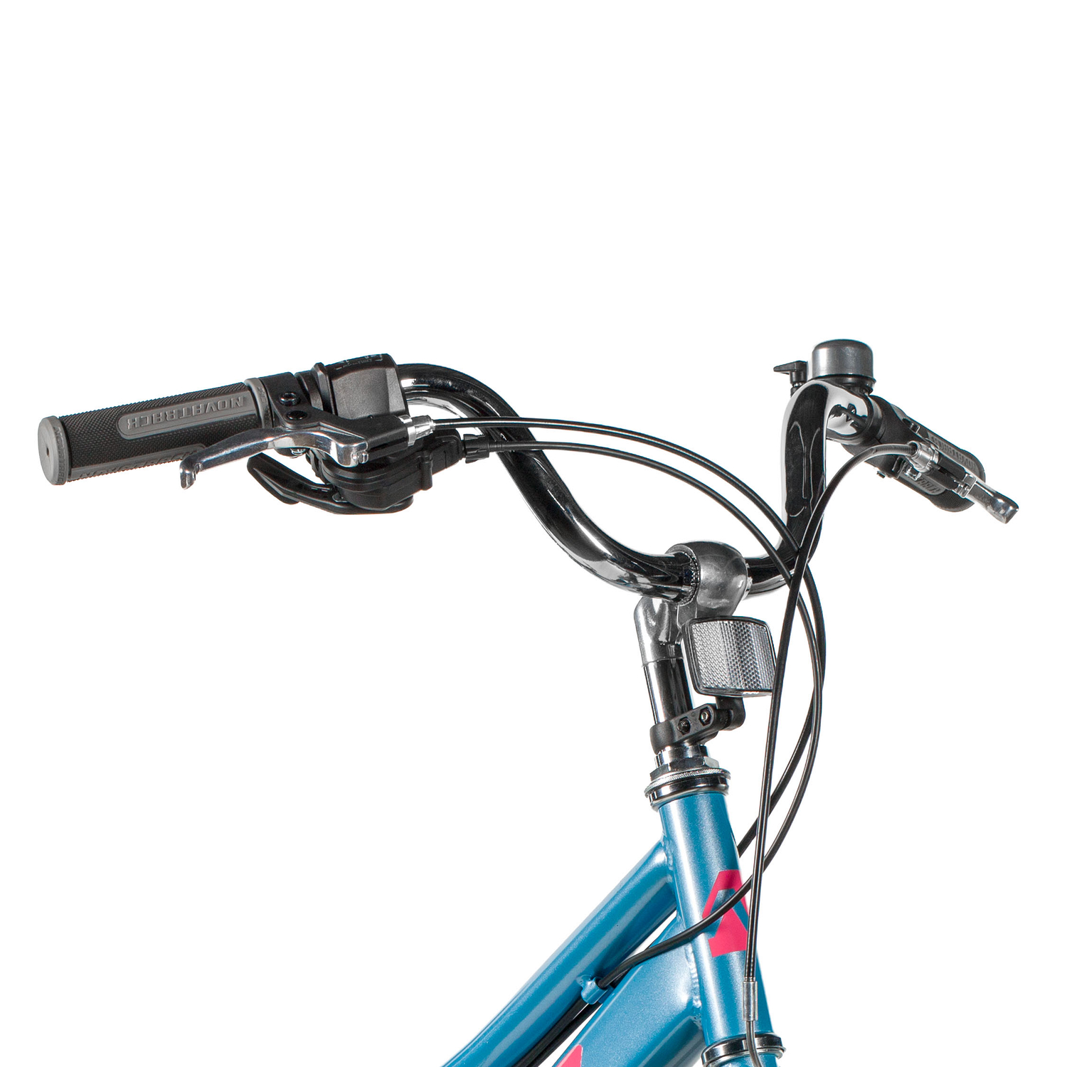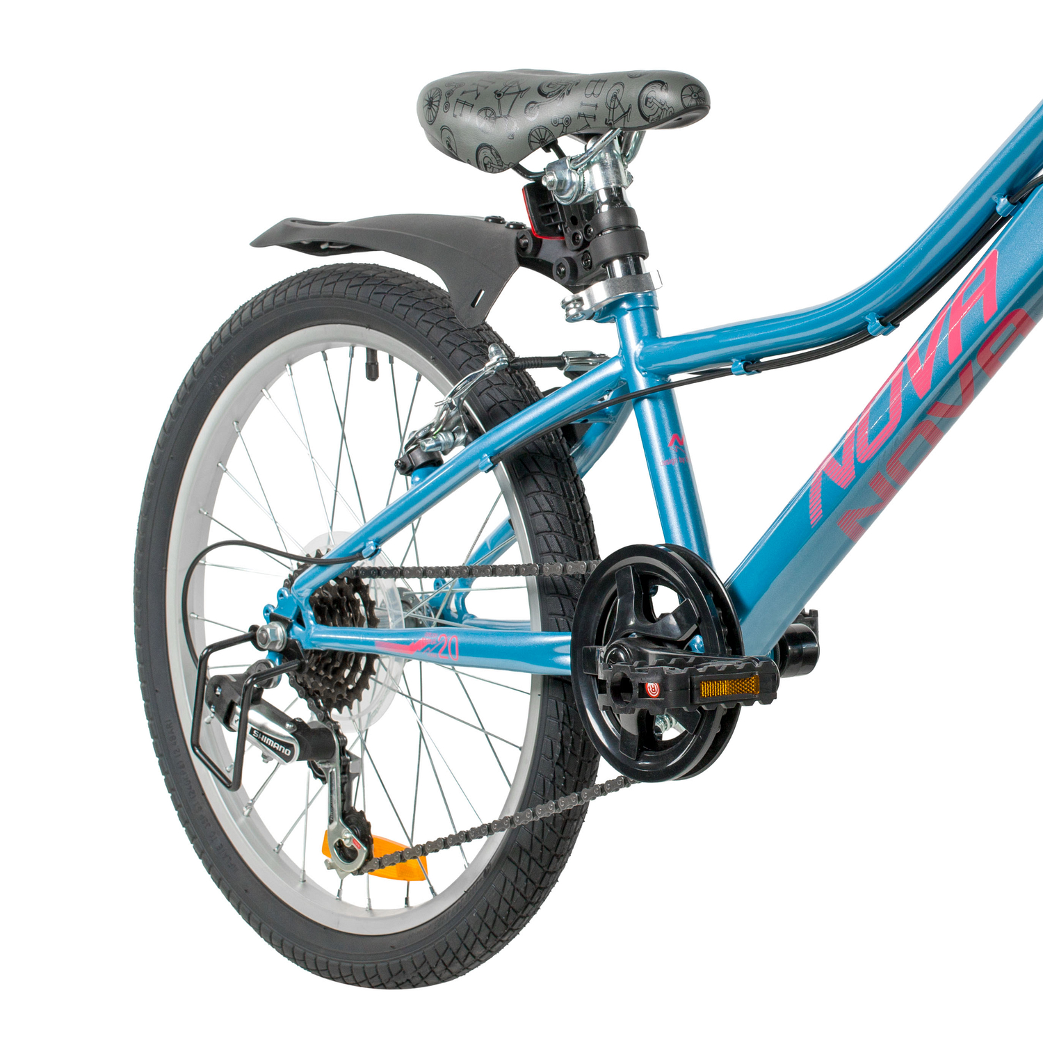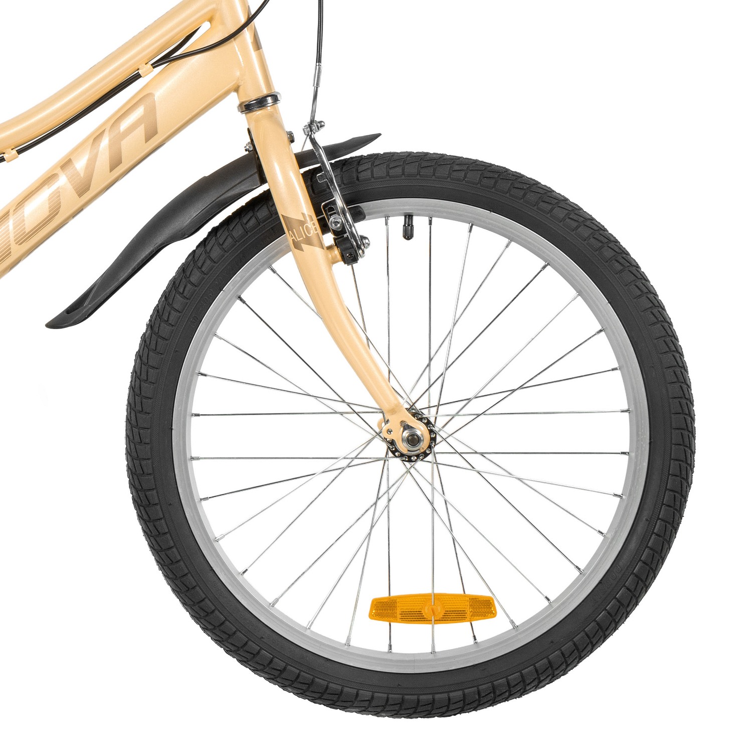 Велосипед Novatrack Alice 20" (2026) – практичная детская модель для девочек ростом 110–130 см и возрастом от 5 до 9 лет. Основан на стальной раме Hi-Ten и жёсткой вилке, что делает конструкцию надёжной и устойчивой при повседневных прогулках. Шестискоростная трансмиссия расширяет возможности катания, помогая ребёнку легче справляться с подъёмами и длинными маршрутами.Ключевые особенности:– Рама из высокопрочной стали Hi-Ten рассчитана на регулярные нагрузки.– Жёсткая вилка снижает вес конструкции и подходит для ровных дорожек.– Трансмиссия 1×6 на базе Shimano Tourney TY21 и манеток microSHIFT TS-38 помогает ребёнку адаптировать педалирование под рельеф.– Ободной механический тормоз даёт понятный отклик и ровную остановку.– Управление передачами удобно для детской руки благодаря форме манеток.– Геометрия оптимизирована под рост 110–130 см и формирует комфортную посадку.