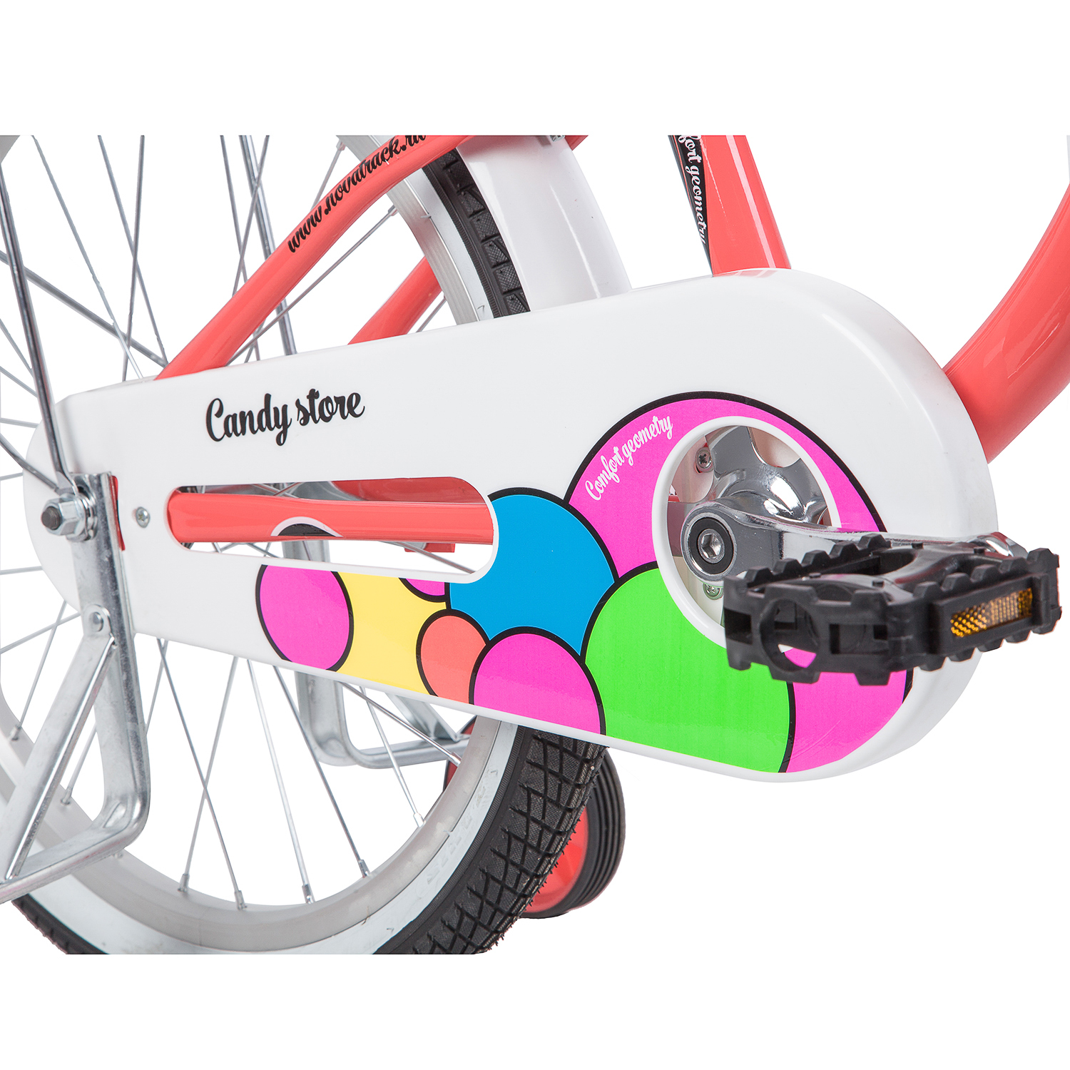 Городской велосипед для девочек Novatrack Candy с колесами 20 дюймов выглядит как вкусная конфета, а не велосипед. Стиль продуман до мелочей от изящной стальной рамы до яркого девчачьего дизайна. Велосипед оснащен одной скоростью и ножным тормозом. Велосипед комплектуется надежным багажником, сумочкой на руле, крыльями, звонком, катафотами. Полная защита цепи сохранит цепь велосипеда от пыли и грязи. Сидение и руль удобно регулируются по высоте, чтобы адаптировать байк под рост ребенка.