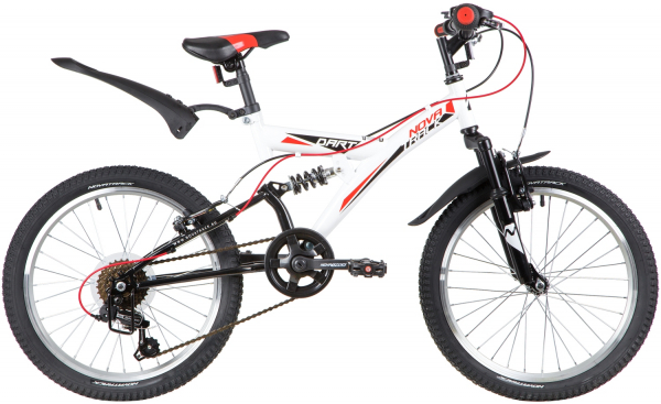 Двухподвесный байк Novatrack Dart c 20-ти дюймовыми колесами - это крепкая и надежная машина для серьезных мальчишек! Крепкая стальная рама и двойные алюминиевые обода, передний и задний амортизаторы, как на взрослых спортивных велосипедах, и надежные V-Brake тормоза делают этот велосипед способным проходить маршруты с легким бездорожьем. А 6-скоростная трансмиссия дает возможность выбрать необходимый скоростной режим для преодоления тех или иных препятствий. Велосипед оборудован регулируемыми седлом и рулем, звонком, крыльями и катафотами. Просто отличный подарок для вашего ребенка!
