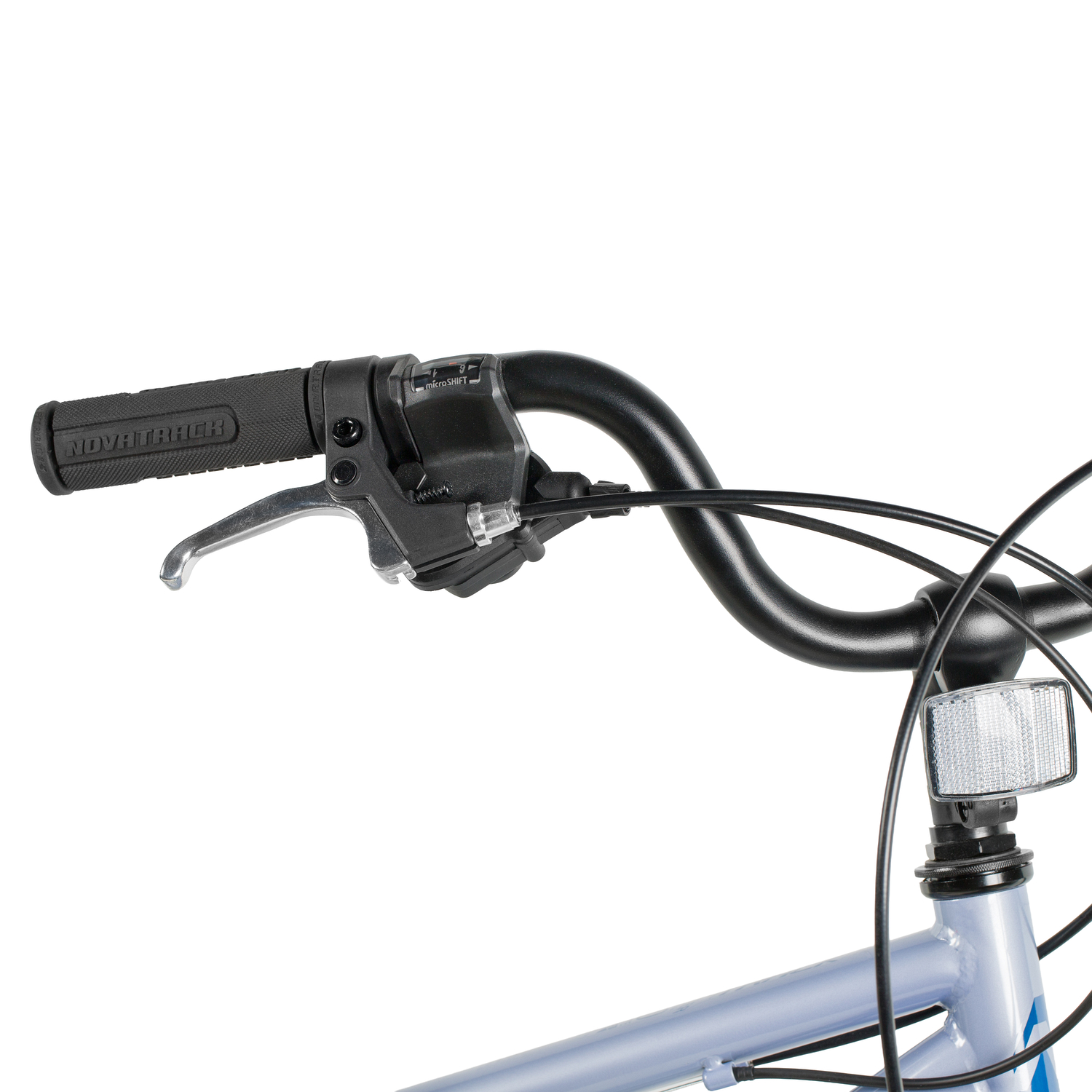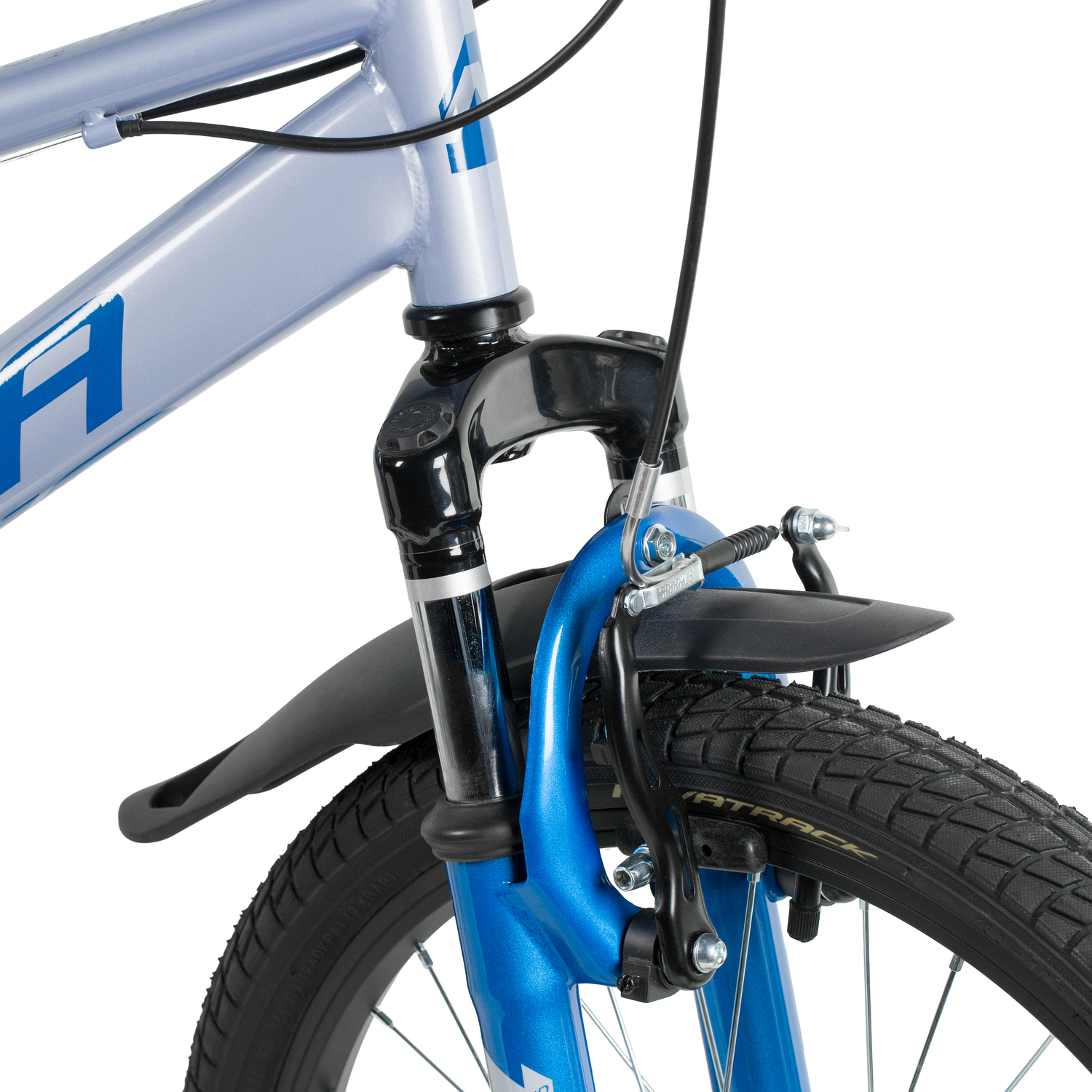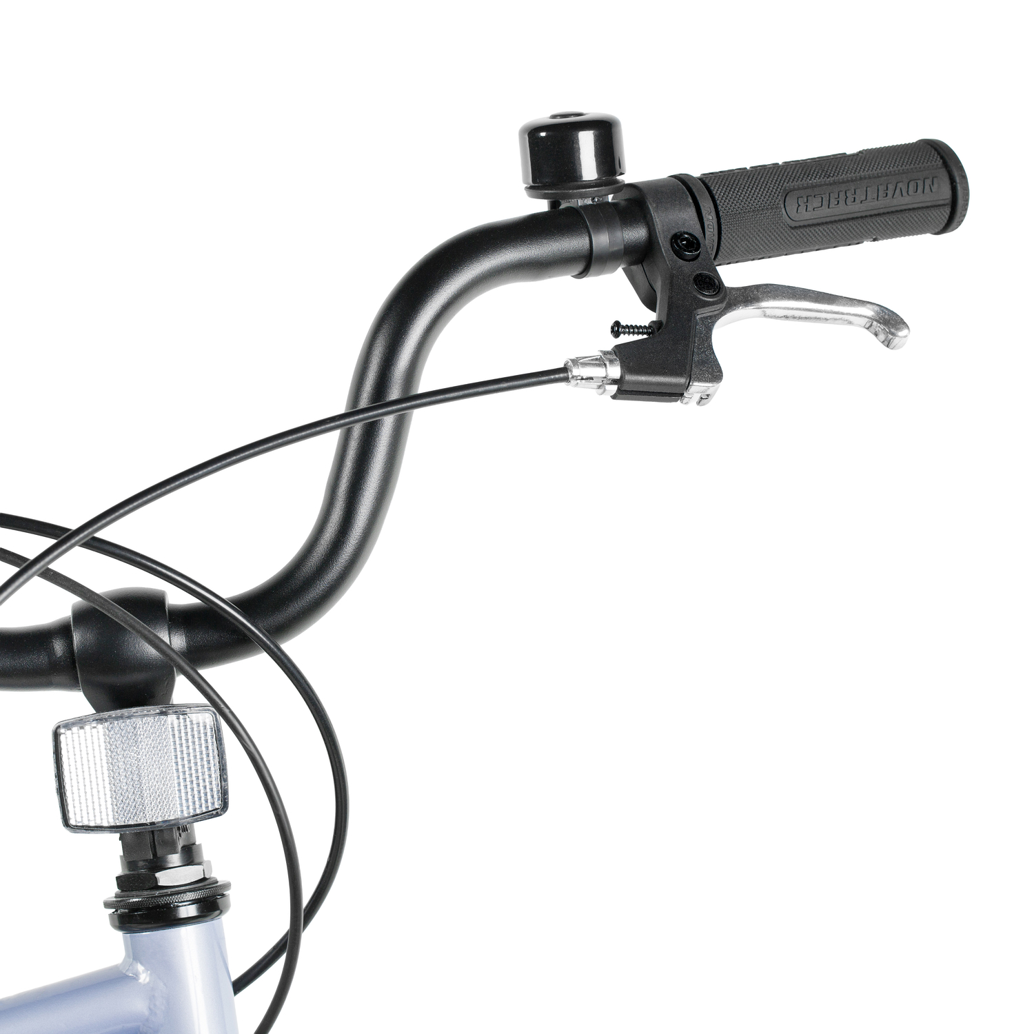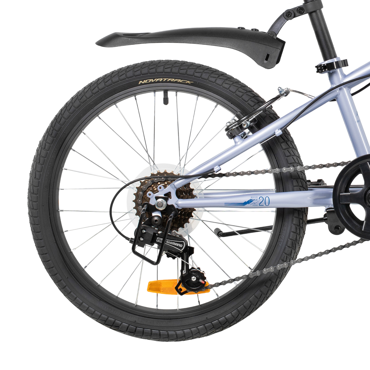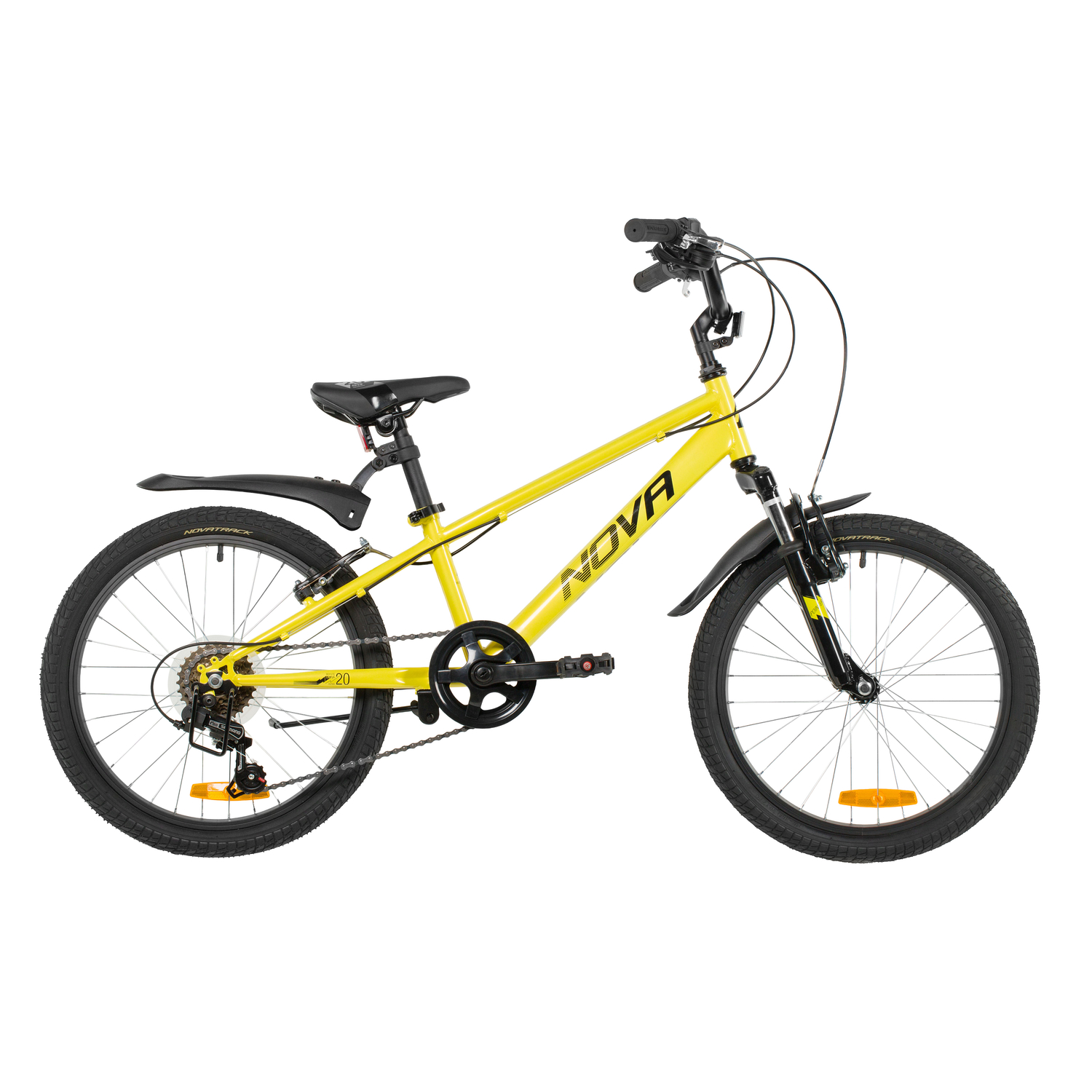 Велосипед Novatrack Pointer 20" (2026) – надёжная модель для мальчиков ростом 110–130 см и возрастом от 5 до 9 лет. Велосипед построен на прочной стальной раме Hi-Ten, оснащён жёсткой вилкой и шестискоростной трансмиссией, что делает его удобным для прогулок по двору, паркам и маршрутам с небольшими подъёмами. Конструкция ориентирована на детей, которые уже уверенно катаются и готовы перейти на более функциональный формат.Ключевые особенности:– Рама из стали Hi-Ten выдерживает регулярные детские нагрузки и сохраняет устойчивость.– Жёсткая вилка снижает вес передней части и не требует обслуживания.– Трансмиссия 1×6 с переключателем Shimano Tourney TY21 помогает подобрать усилие под рельеф.– Ободной механический тормоз формирует ровную и предсказуемую остановку.– Манетки microSHIFT TS-38 удобны для детской руки и обеспечивают чёткие переключения.– Геометрия ориентирована на рост 110–130 см и даёт комфортную посадку для длительных прогулок.
