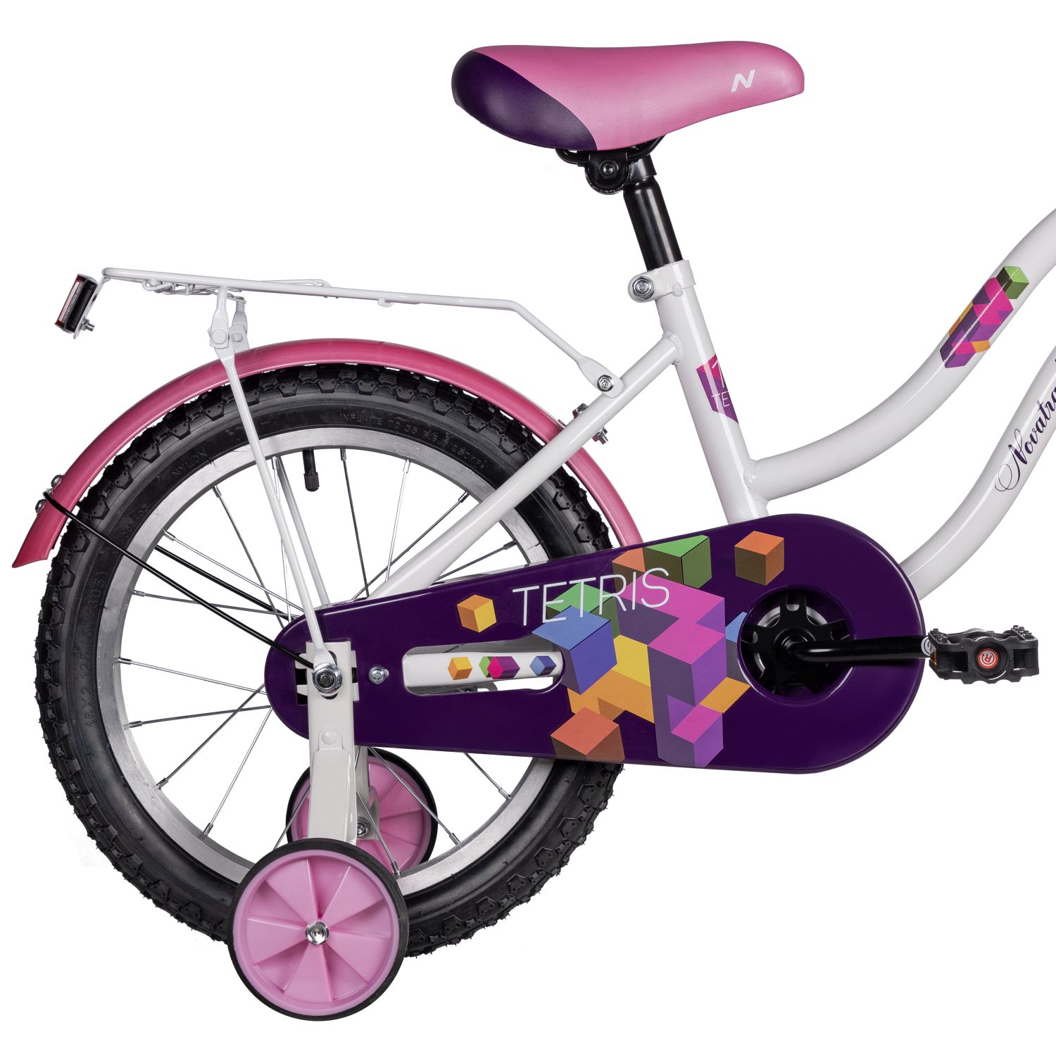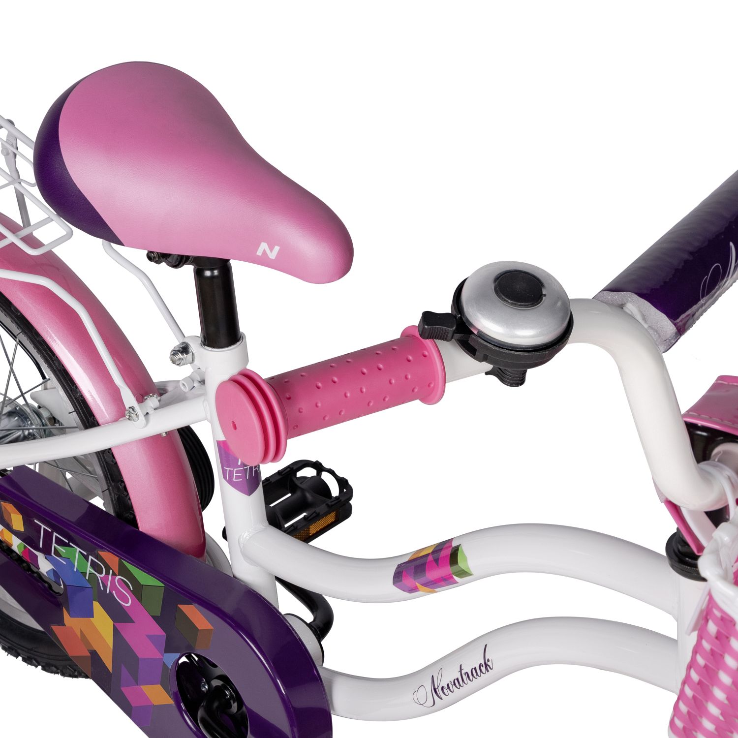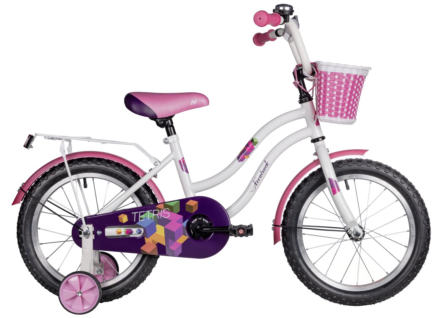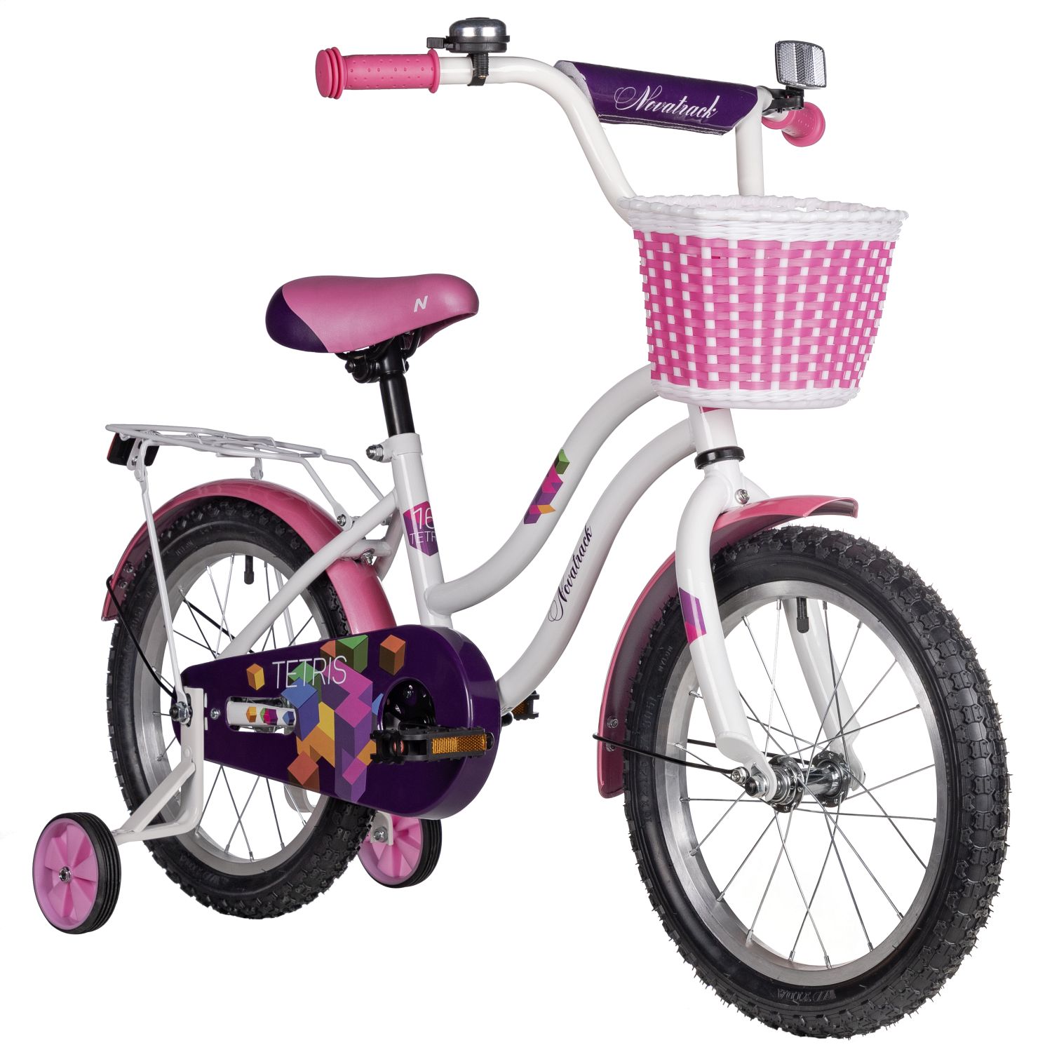 Детский велосипед Новатрек Tetris с 16-ми колесами - достойный выбор для вашего ребенка! Комфортный, безопасный и надежный, этот велосипед представлен в белом или фиолетовом цветах. Преимущества Tetris - это надежные компоненты, стальная изящная рама, удобная корзина, стальной багажник для перевозки игрушек. Удобные регулировки позволят подобрать комфортную посадку, а идущие в комплекте крылья защитят от грязи и брызг в дождливую погоду. Имеется защита цепи и дополнительные колесики. Хороший байк для начинающих!