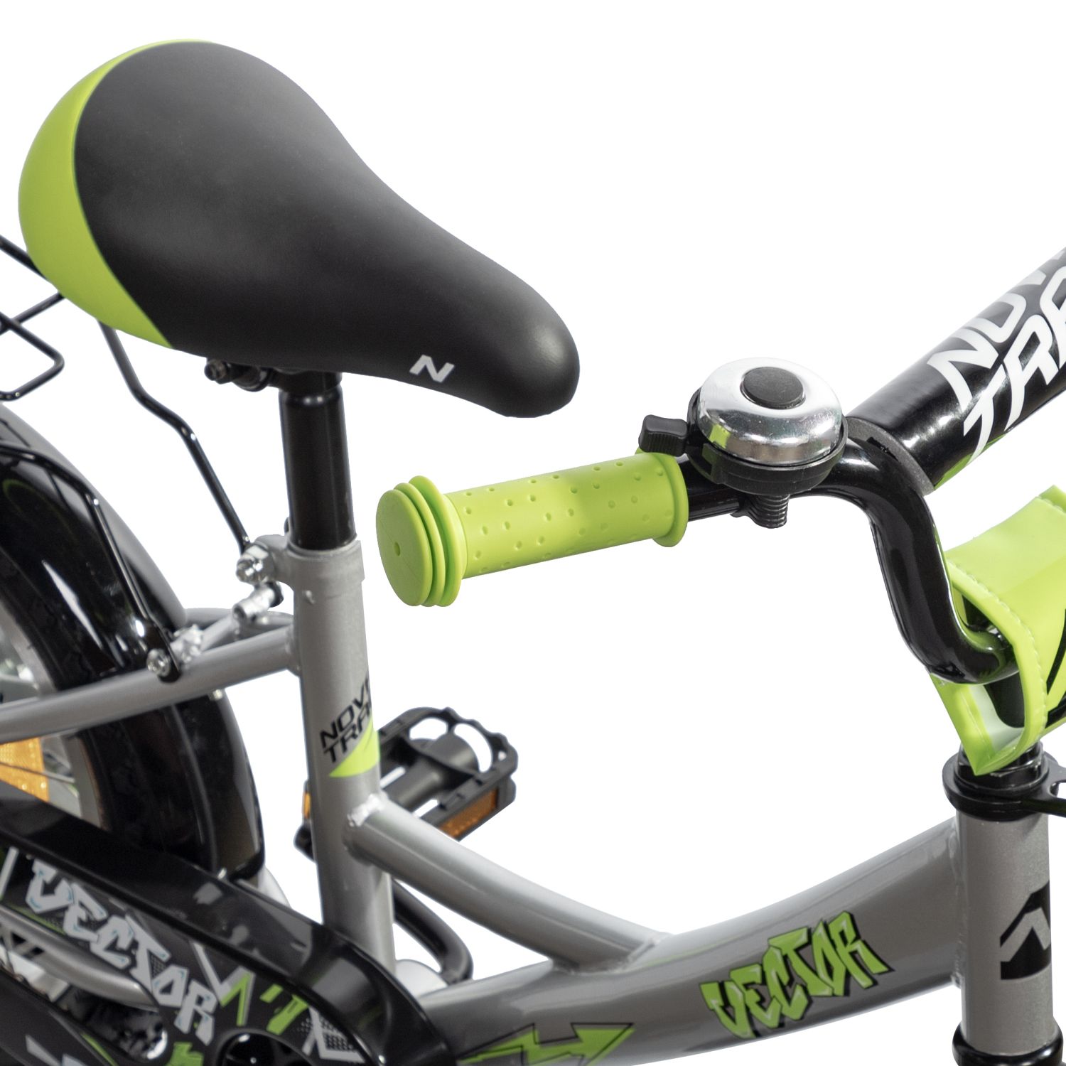 Детский велосипед Novatrack Vector с колесами 14 дюймов - велосипед для маленьких неугомонных райдеров. Малыш будет в восторге от этого яркого, прочного и надежного велика! Для максимально комфортного катания велосипед оснащен багажником, защитой цепи, крыльями, а еще - дополнительной парой съемных колес, которая поможет начинающему маленькому велосипедисту удерживать равновесие при катании и постепенно освоить двухколесный байк. Прочная стальная рама выдержит большие нагрузки и частые падения. Установлен задний ножной тормоз. Словом, одни плюсы!
