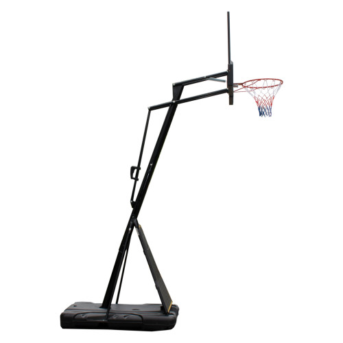 Имеет усиленную, устойчивую конструкцию и усиленное металлическое кольцо с амортизаторами для активной игры. Емкостьоснования заполняется 150 кг воды или песка. Встроенные в основание транспортировочные колеса облегчают транспортировку. Защитная панель основания предохраняет играющих от получения травм.