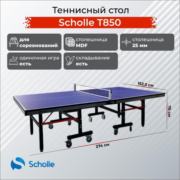Высококачественный теннисный стол Scholle T850 сделан по последним технологиям и предлагает максимальную функциональность и удобство использования. Столешница состоит из 25 мм качественного МДФ материала с антибликовым покрытием, который имеет высокую прочность и влагоустойчивость, а также обеспечивает великолепный отскок теннисного мяча профессионального уровня. При этом материал является экологичным, что важно для использования внутри помещений.
