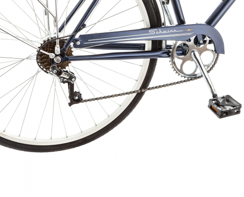 Wayfarer – это классический дорожный велосипед для поездок по городу и утоптанным тропинкам парков. Глубокий синий цвет рамы и вилки в сочетании с хромированными элементами создают сдержанный облик велосипеда для поездок каждый день. Прочная стальная рама гарантирует долговечность велосипеда. Седло и руль регулируются по высоте для того, что бы вы могли подобрать идеальную посадку. Переключатели передач от компании Shimano обеспечивают надёжность и не нуждаются в частой регулировке. Для перевозки необходимых вещей Schwinn Wayfarer оснащён багажником. Полноразмерные крылья и защита передних звёзд сохраняют вашу одежду чистой в дождливую погоду.