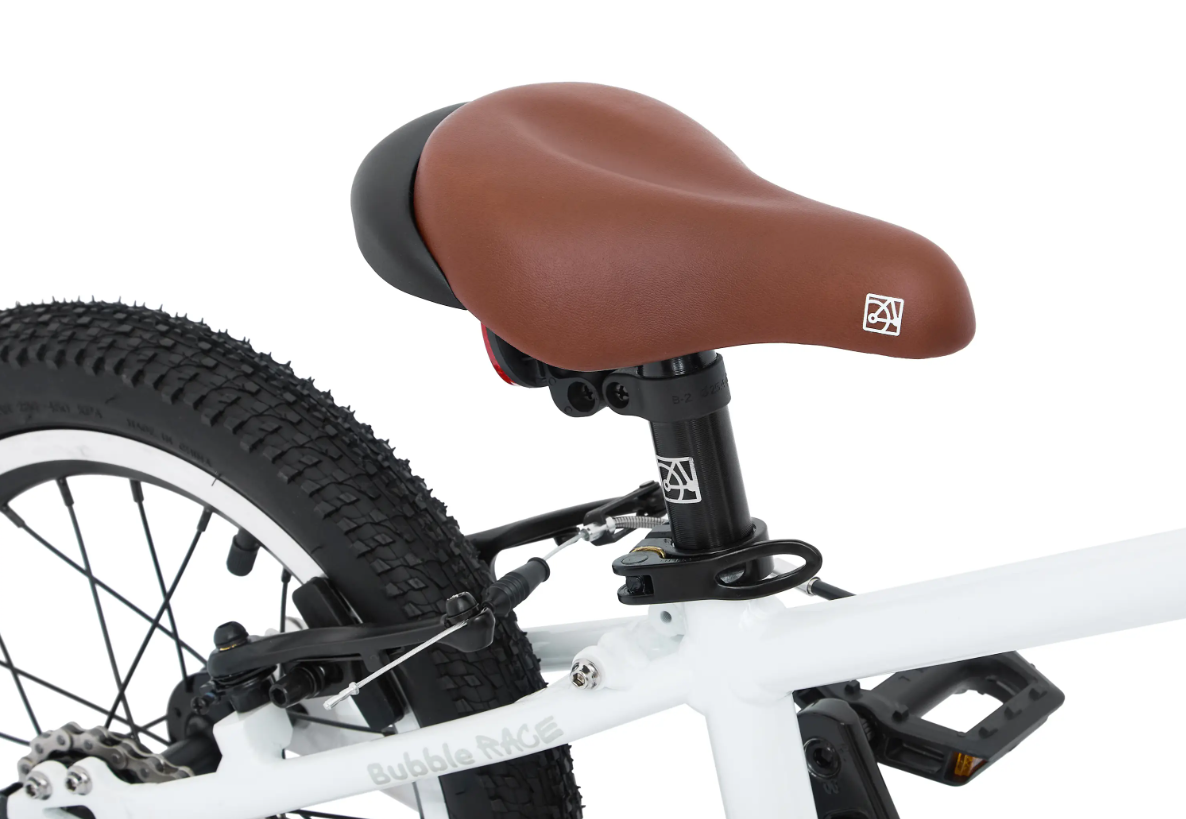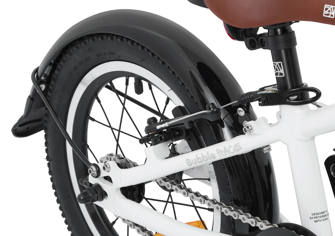 Bubble Race 14 — отличный выбор для тех, кто ищет первый велосипед для своего ребенка. Это один из самых легких детских велосипедов на рынке весом всего 5,9 кг. Тормозные ручки адаптированы под детские руки и не доставят неудобств малышу, седло регулируется по высоте, велосипед будет «расти» вместе с юным спортсменом. Зубастые покрышки подходят для города и парка. Возможна установка дополнительных тренировочных колес (приобретаются отдельно). Подойдет для самых юных спортсменов от 3 до 4,5 лет, ростом от 95 до 110 см.