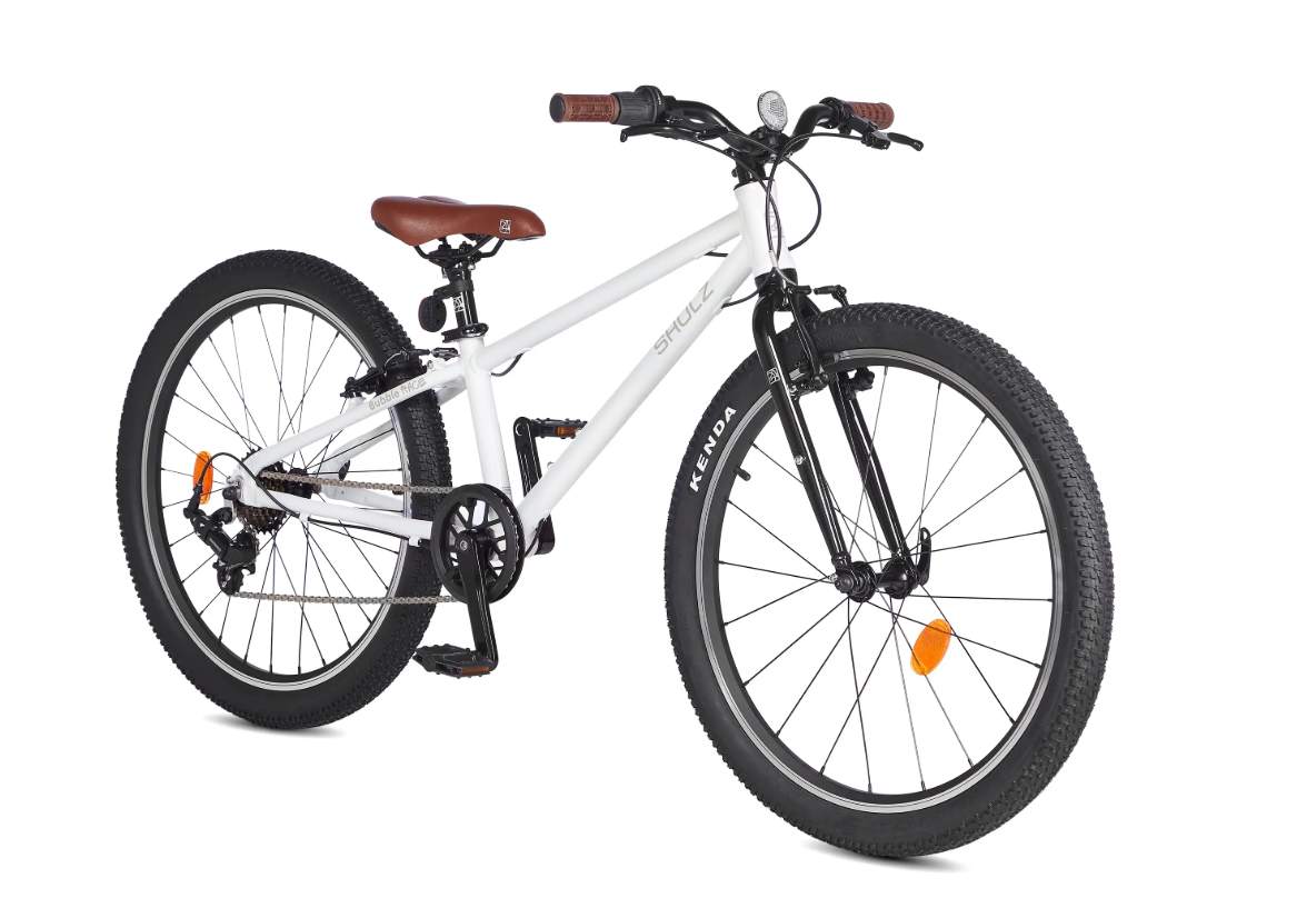 Детский велосипед с 24-дюймовыми колесами — выглядит уже почти как взрослый, однако сделан специально для ребенка: один из самых легких на рынке (9,8 кг, юный велосипедист сможет самостоятельно переносить его по лестницам и препятствиям), но при этом очень крепкий и надежный, что позволяет ездить не только по асфальту, но и по грунтовым дорогам. 7 скоростей помогут преодолевать подъемы и спуски, получая максимум удовольствия от катания. Велосипед подойдет для ребенка от 7 до 12 лет, ростом от 125 до 140 см. Вес велосипеда 9,8 кг.