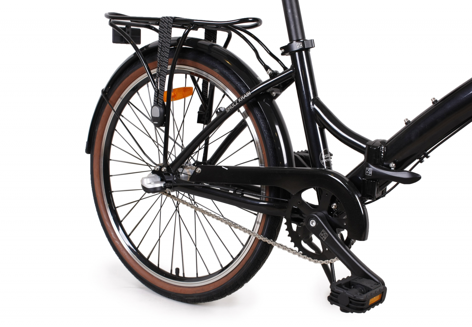 KRABI с алюминиевой рамой и 3-скоростной планетарной втулкой Shimano Nexus — самый большой складной велосипед в линейке SHULZ. Благодаря 24-дюймовым колесам и широкому комфортному седлу он идеально подходит для езды по любым дорогам, в том числе загородом.