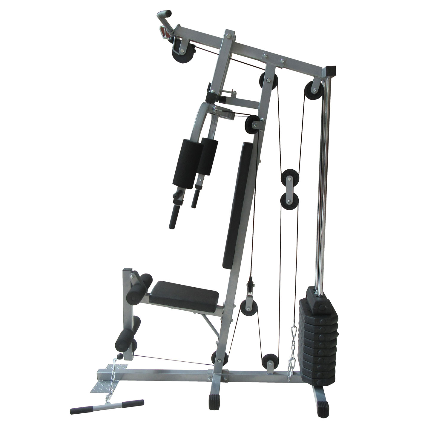 Силовой комплекс позволяет выполнять упражнения на различные группы мышц: жим от груди, баттерфляй, верхняя и нижняя тяги, пресс - спина, разгибание ног.
