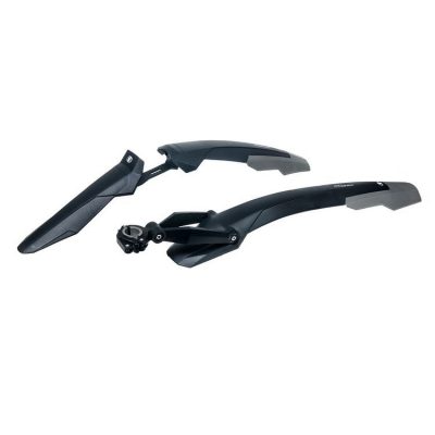 Комплект крыльев Simpla ADHD SDL для велосипедов 27.5 и 29, совместимы с передним амортизатором. Переднее с крепление в шток вилки, заднее кронштейном за подседельный штырь. Большая площадь покрытия. Цвет черно-титановый.
