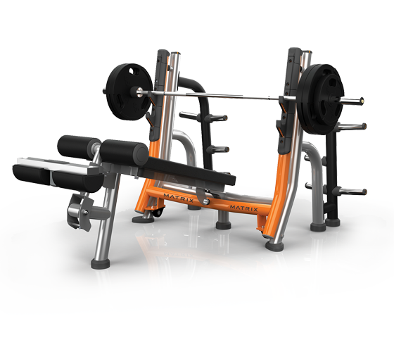 MATRIX MAGNUM A680 - ультрапрофессиональная скамья для жима с отрицательным наклоном. Снабжена доводчиком, позволяющим зафиксировать стартовое положение штанги в строго вертикальном положении. Конструкция из мощного профиля выдерживает работу с самыми тяжелыми весами. Рама окрашена в два слоя и покрыта лаком. Держатели для штанги на боковых стойках выполнены из формированного уретана.