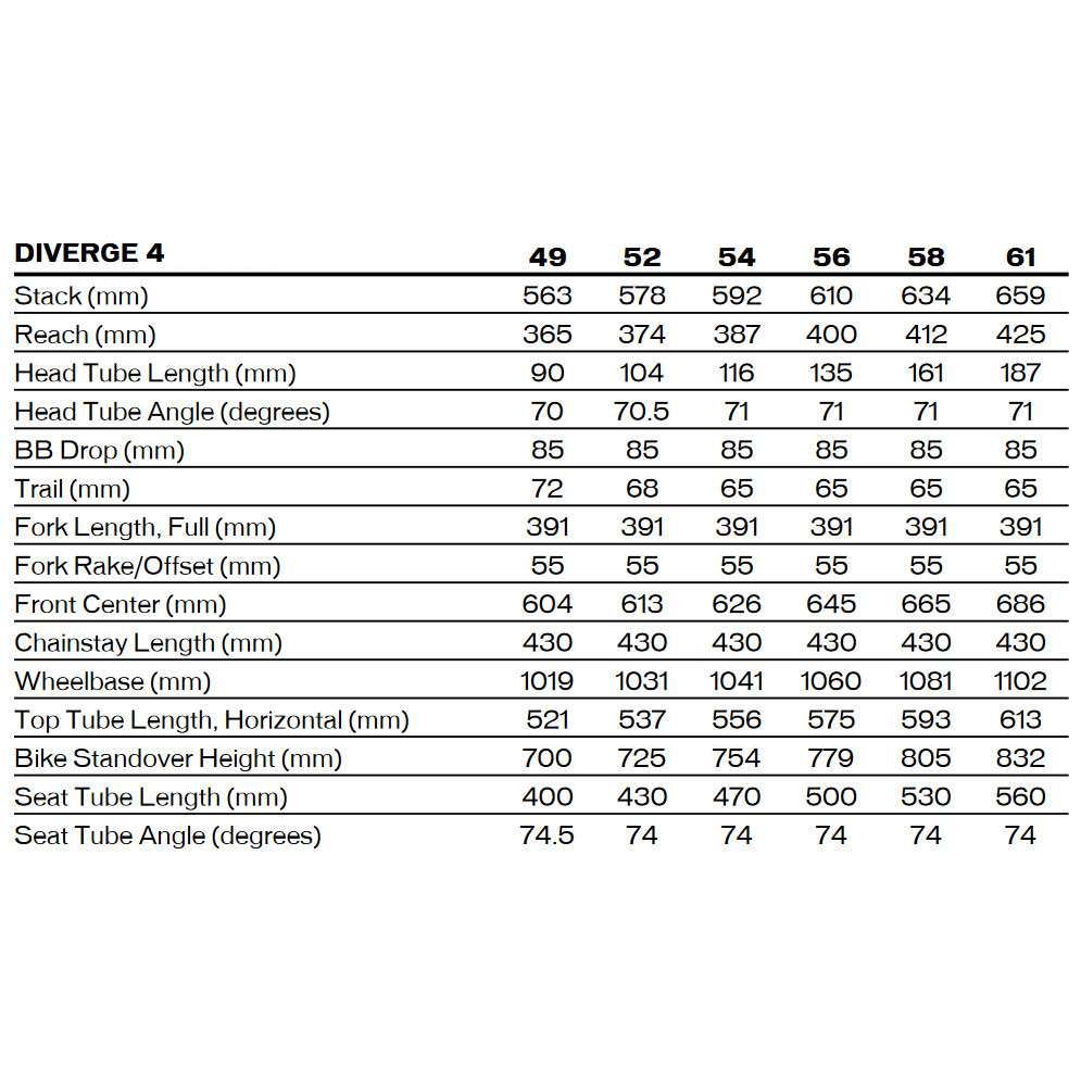 Diverge 4 Гравийный велосипед предназначен как для гонок, так и для длительных поездок по бездорожью. Благодаря новой системе амортизации Future Shock System, особенно отзывчивой раме и большому дорожному просвету он обеспечивает максимальный контроль и комфорт на любой поверхности. Дополнительные преимущества даёт увеличенное внутреннее пространство для хранения, которое устанавливает новые стандарты в гравийном секторе. Это позволяет безопасно и практично хранить важное оборудование.