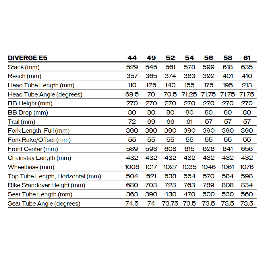 Благодаря новой геометрии Diverge устанавливает новые стандарты: увеличенный вылет, меньший угол наклона рулевой колонки и вилка с большим выносом обеспечивают устойчивость и безопасность при езде по бездорожью, а более короткие выносы сохраняют прямое и маневренное рулевое управление. Низкий кареточный узел повышает устойчивость, но при этом остается достаточно высоким для оптимального использования с колесами 650b.