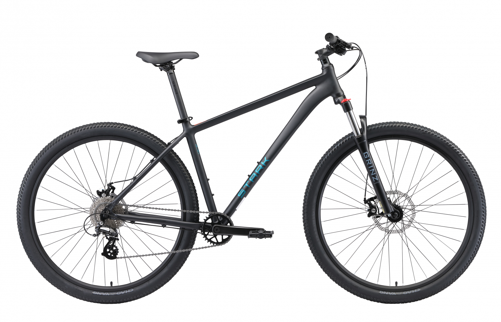 Горный велосипед с оборудованием начального любительского класса Shimano, 8 скоростей. Технические особенности: легкая алюминиевая рама (сплав 6061, скрытая проводка, кареточный стакан BSA, прямой рулевой стакан, съемный петух), амортизационная вилка Grinz Hortus (пружинно-эластомерная, ход 100 мм, предварительная нагрузка, блокировка), двойные алюминиевые обода Stark DA-18 (под AV ниппель), дисковые механические тормоза Tektro MD-M280 (роторы 180/160 мм). Подходит для активной езды по различным дорогам и пересеченной местности.