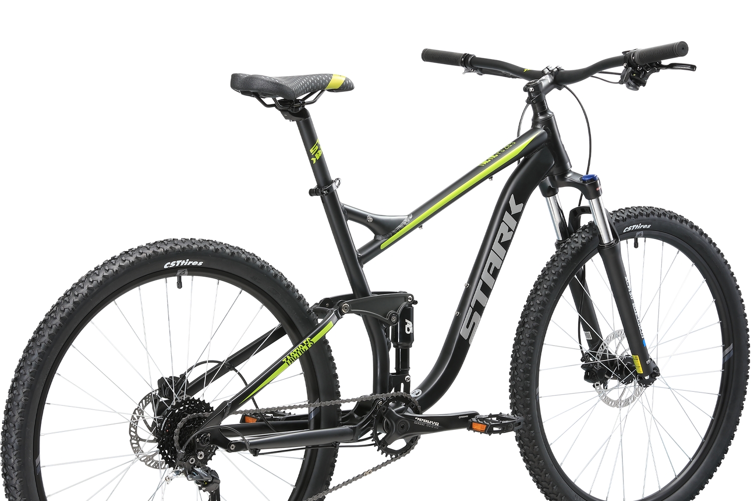 Двухподвес с оборудованием любительского класса Shimano, 9 скоростей. Технические особенности: алюминиевая рама AL-6061, амортизационная вилка SR Suntour XCM30, задний амортизатор KS A5-RE, двойные обода Qijian DS-26, дисковые гидравлические тормоза Tektro hd-m285. Подходит для активной езды по различным дорогам и пересеченной местности.