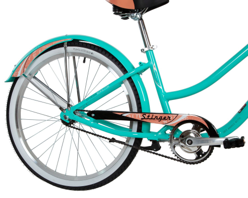 Велосипед - круизер STINGER CRUISER LADY - это в первую очередь прогулочный велосипед дарящий эмоции от неспешных проездов по городским паркам и набережным. Дизайн, похожий на мотоциклы из прошлого, однозначно будет приковывать взгляды прохожих и даже заядлых спортсменов. Модель выпускается в трех комплектациях. CRUISER LADY - самая бюджетная, рама легкая, из алюминиевого сплава с полуинтегрированной рулевой колонкой, горизонтальными дропаутами и вынесенным вперед кареточным узлом, который дополнительно усилен отдельной перемычкой. Вилка использована стальная для повышения виброгашения, крылья с дополнительной боковой защитой, защита цепи в сочетании с широким седлом на пружинах делает эту модель максимально комфортной в управлении. Основное отличие STINGER CRUISER LADY от остальных вариаций - базовая версия втулки с классическим ножным тормозом и одна передача, плюс специально заниженная верхняя труба для комфортной посадки. Передний тормоз ободной V-brake, задний привычный ножной простое и эффективное решение для велосипедов такого класса. Модель выпускается в двух цветах синий и зеленый, есть аналогичная мужская версия - CRUISER M.