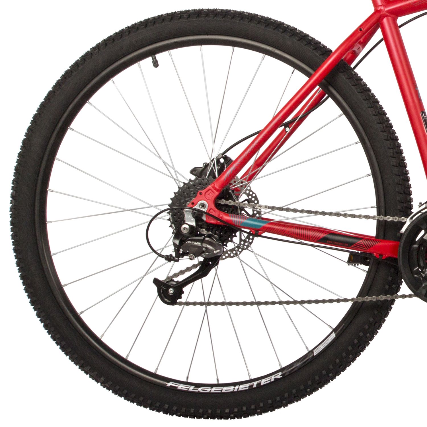 Горный велосипед с оборудованием начального класса Shimano, 27 скоростей. Технические особенности: алюминиевая рама 6061-T6, амортизационная вилка STG Spice RL с удаленной блокировкой, двойные обода Felgebeiter VB-18D, дисковые гидравлические тормоза Shimano MT-200. Подходит для прогулочной езды по различным дорогам и пересеченной местности.