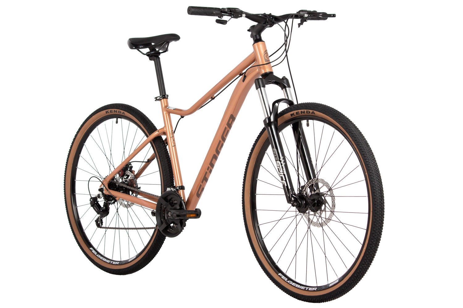 Stinger Laguna 29 (2025) – это горный велосипед, созданный для энергичных девушек, которые готовы к новым открытиям и приключениям. С колёсами диаметром 29 дюймов, он идеально подходит для велосипедисток ростом от 175 до 185 см, предлагая отличную манёвренность и проходимость на любых маршрутах. Этот велосипед станет вашим надёжным компаньоном в увлекательных поездках по живописным тропам и городским паркам.Его рама изготовлена из прочного алюминия 6061-T6, что делает её лёгкой и устойчивой к нагрузкам. Пружинная вилка STG Spice с ходом 110 мм отлично поглощает неровности, позволяя наслаждаться плавным катанием даже по сложным участкам.С 14 скоростями (2*7) и задним переключателем Shimano Tourney TY200, Stinger Laguna 29 позволяет легко адаптироваться к различным условиям и рельефам. Дисковые механические тормоза STG с роторами 180/160 мм производят уверенную остановку, что особенно важно для безопасных поездок.Вот несколько особенностей, которые выделяют Stinger Laguna 29:– Лёгкая и прочная алюминиевая рама, способная выдерживать любые нагрузки.– Пружинная вилка STG Spice с ходом 110 мм для комфортного катания по неровным поверхностям.– 14 скоростей (2*7) для удобного переключения и адаптации к различным маршрутам.– Дисковые механические тормоза STG для надёжной остановки в любых условиях.– Задний переключатель Shimano Tourney TY200 для плавного и точного переключения передач.– Втулки Joytech S-Club, обеспечивающие долговечность и надёжность.– Обода Felgebeiter VB-18, которые гарантируют прочность и стабильность.– Покрышки ZX Torres 2.1, обеспечивающие отличное сцепление и комфорт на дороге.