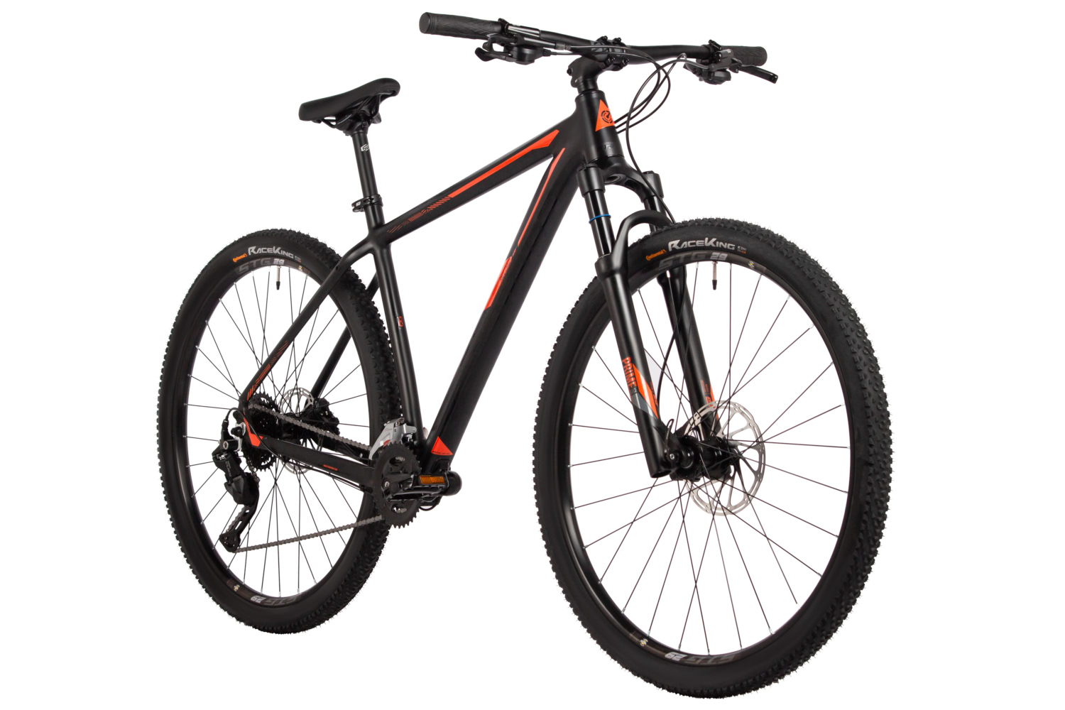Stinger Reload STD 45 Black Edition 29 (2025) – хардтейл с уверенной геометрией и надёжной навеской Shimano Cues, созданный для тех, кто хочет освоить кросс-кантри на больших колёсах. Подходит для любительских тренировок, катания по лесным тропам и пересечённой местности.Преимущества модели:– Лёгкая алюминиевая рама 6061-T6 – прочная конструкция с гидроформированными трубами и современными узлами.– Воздушно-масляная вилка STG Prime SL – 100 мм хода сглаживают неровности и помогают сохранять контроль.– Трансмиссия Shimano Cues 2x9 – сочетание надёжности и точного переключения для разных типов маршрутов.– Гидравлические тормоза STG – уверенное торможение на сухой и мокрой поверхности, роторы 160 мм.– 29-дюймовые колёса на втулках Novatec S-Elite – высокая надёжность вкупе с ободами STG XC/25 Tubeless Ready.– Покрышки Continental Race King 2.0 – быстрые и накатистые, подходят для сухого грунта и укатанных трасс.