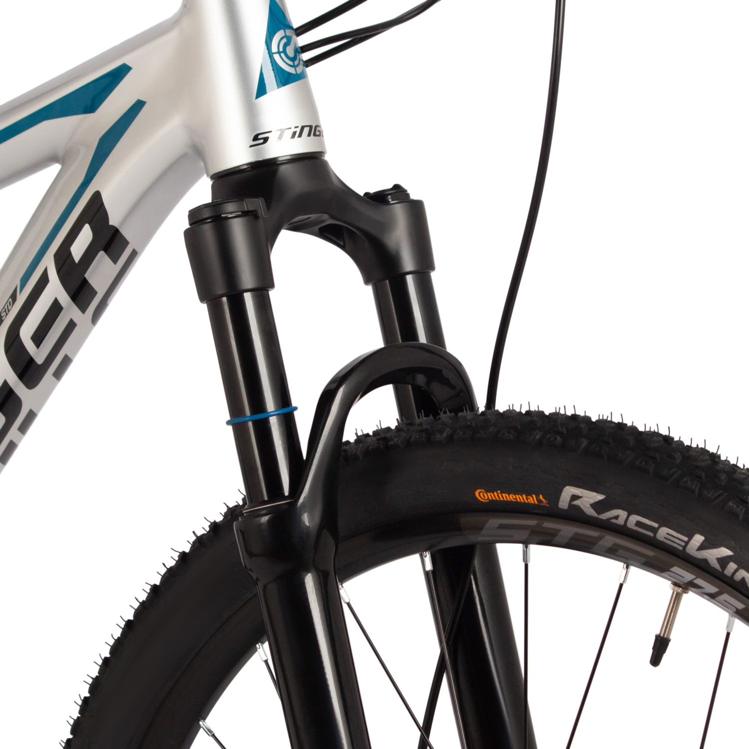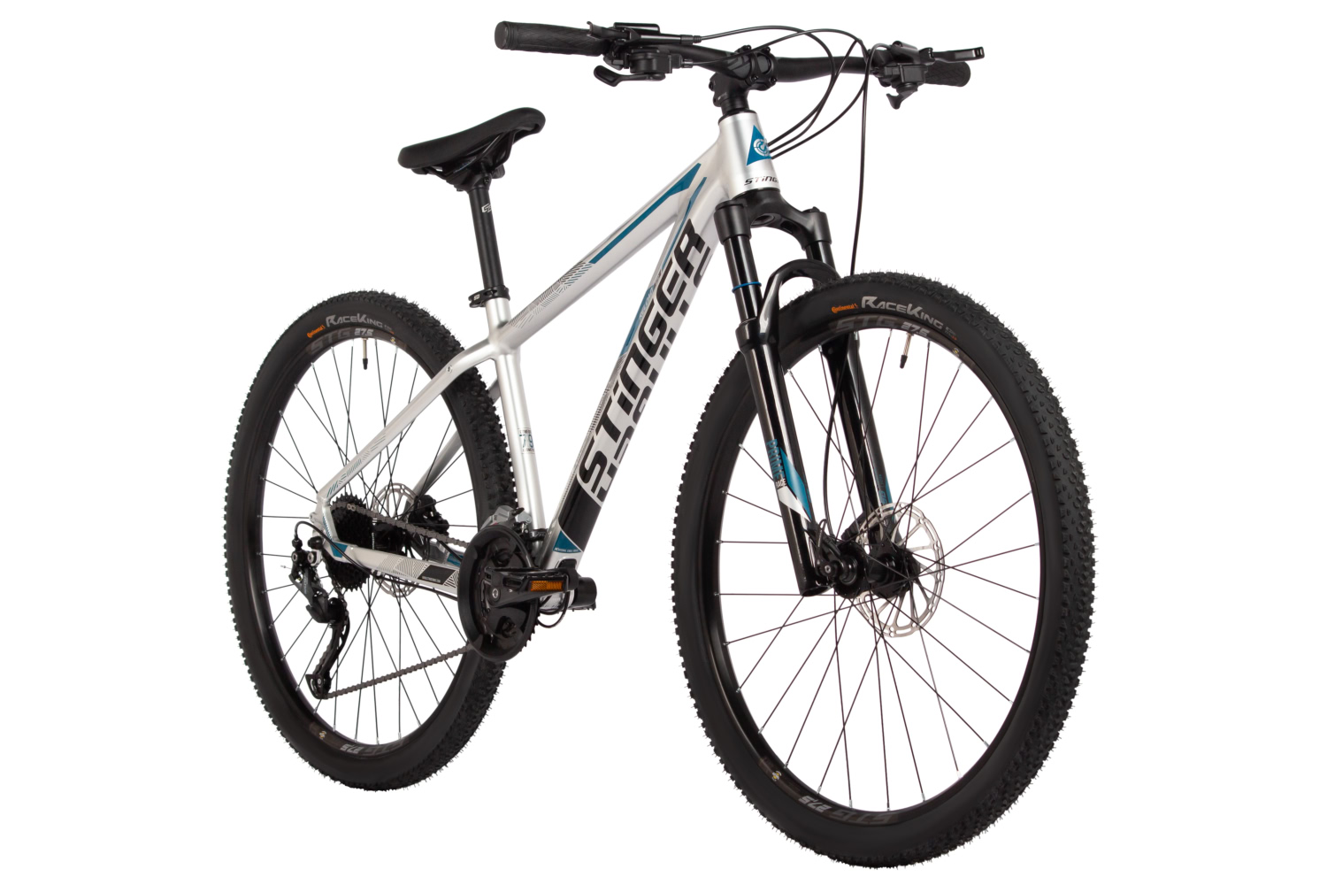 Stinger Reload STD 45 Silver Edition 27.5 (2025) – хардтейл для тех, кто ищет надёжный, сбалансированный велосипед для езды по пересечённой местности. Модель сочетает лёгкую алюминиевую раму, амортизацию начального спортивного уровня и трансмиссию с широким диапазоном передач, подходящую как для тренировок, так и для активного отдыха.Преимущества модели:– Рама из алюминиевого сплава 6061-T6 – жёсткая, но лёгкая конструкция с современным гидроформингом.– Воздушно-масляная вилка STG Prime SL – ход 100 мм помогает гасить удары на бездорожье и делает поездки комфортнее.– Трансмиссия 3x9 на компонентах Shimano Altus и microSHIFT Marvo – 27 скоростей для подъёмов, разгонов и работы в разном рельефе.– Дисковые гидравлические тормоза STG – стабильное торможение на мокром или пыльном покрытии, роторы 160 мм.– 27.5-дюймовые колёса на втулках Novatec S-Elite с ободами STG XC/25 – прочные и совместимы с бескамерными системами.– Покрышки Continental Race King 2.0 – проверенный вариант для сухих трасс, сочетают скорость и надёжное сцепление.