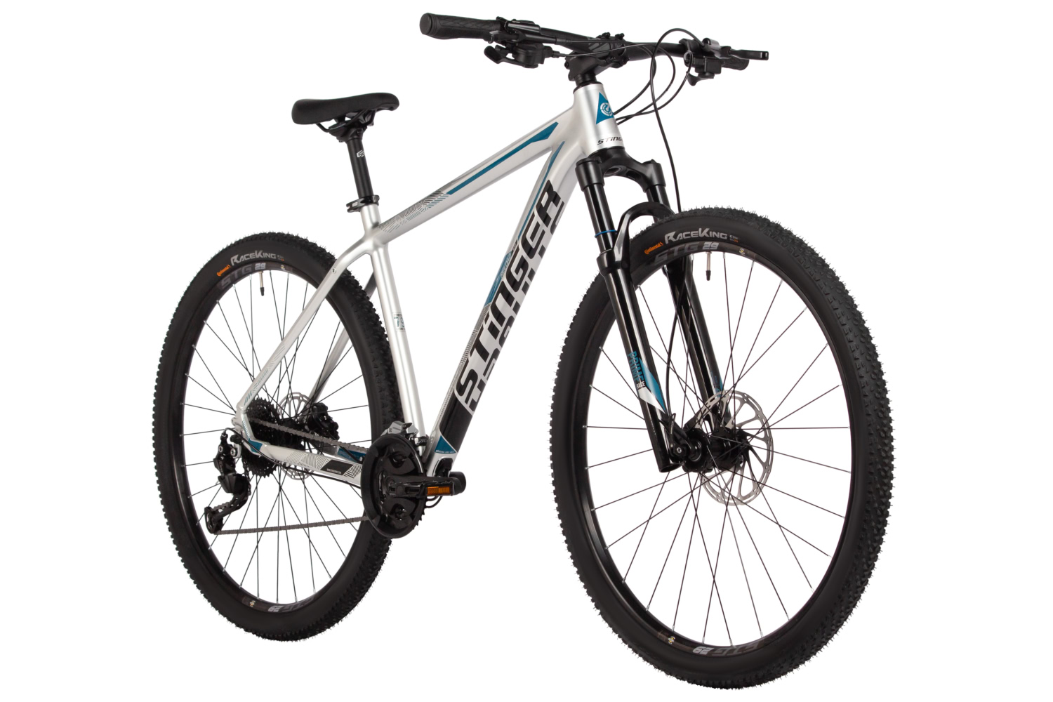 Stinger Reload STD 45 Silver Edition 29 (2025) – хардтейл с комфортной посадкой, продуманной геометрией и точным переключением. Отличный выбор для тех, кто ищет надёжный велосипед для продолжительных поездок по пересечённой местности, загородным маршрутам и лёгкому бездорожью.Преимущества модели:– Алюминиевая рама 6061-T6 – лёгкая и прочная основа с гидроформированными трубами и современным дизайном.– Воздушно-масляная вилка STG Prime SL – ход 100 мм, уверенно работает на сложных участках и смягчает удары.– Трансмиссия 3x9 с переключателями Shimano Altus и манетками microSHIFT – широкие возможности для выбора передачи.– Гидравлические дисковые тормоза STG – надёжное торможение и предсказуемая работа в любых погодных условиях.– Большие 29-дюймовые колёса на втулках Novatec S-Elite – устойчивость, долговечность и плавный накат.– Обода STG XC/25 Tubeless Ready – можно перейти на бескамерную систему для снижения веса и повышения проходимости.– Универсальные покрышки Continental Race King 2.0 – рассчитаны на твёрдый и укатанный грунт, хорошо держат скорость.