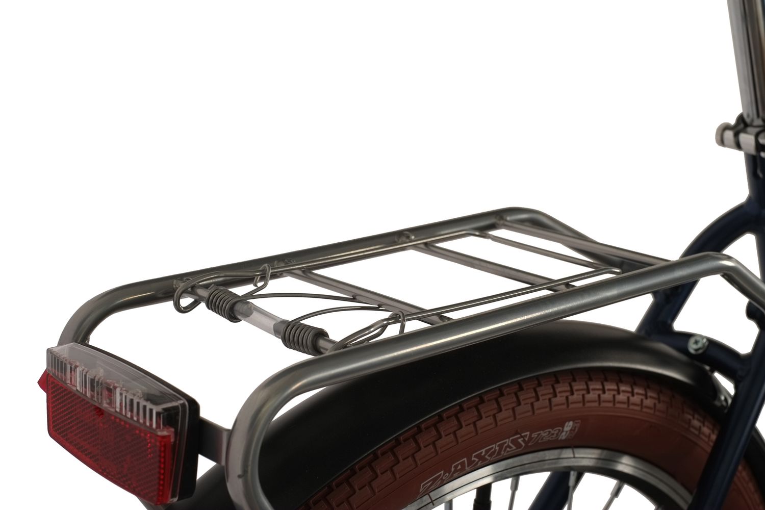 Прогулочный мужской велосипед STINGER TOLEDO в классической геометрии и компоновке прежде всего предназначен для повседневной городской эксплуатации. Неприхотливый и стильный, хороший вариант для поездок на работу. Из особенностей этой модели отметим колеса 26 дюймов, амортизационная вилка, планетарная втулка на 3 передачи, крылья, защита цепи, багажник, регулируемый вынос, комфортное седло и передняя и задняя фары. Рама создана из алюминиевого сплава с использованием горизонтальных дропаутов и труб с ребрами жесткости, что дает хорошую грузоподъемность - отличный выбор для людей с большим весом. Колеса собраны на двойных ободах с широкими дорожными покрышками толщиной 2.35 дюйма. Тормоз передний ободной типа V-brake, задний классический ножной. Модель доступна в синем цвете в трех размерах рам 161820 дюймов.