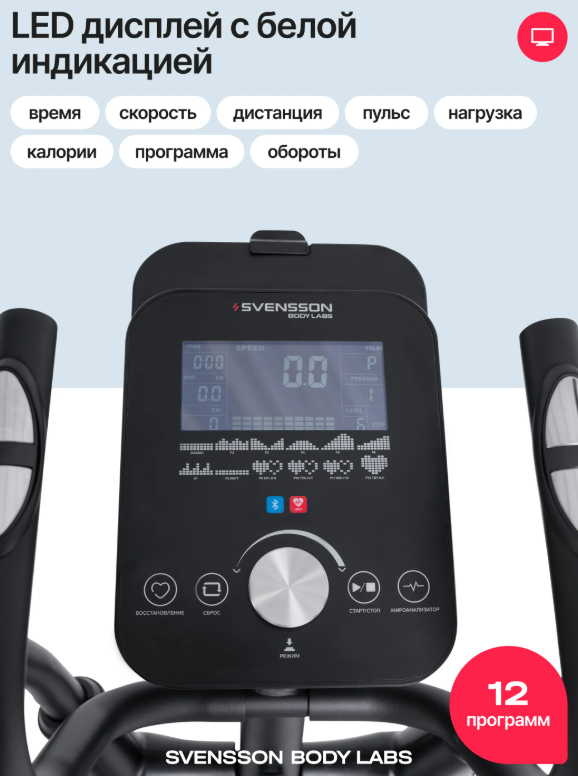 Эллиптический тренажер SVENSSON BODY LABS FORGE — это идеальный выбор для тех, кто хочет заниматься фитнесом дома. С весом 52 кг и высокопрочной рамой с антикоррозийной обработкой, этот тренажер обеспечивает устойчивость и долговечность. Он оснащен электромагнитной системой нагружения с 16 уровнями нагрузки, что позволяет вам адаптировать тренировки под свои физические возможности и цели.