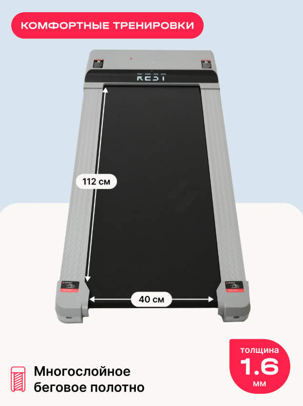 Электрическая беговая дорожка оснащена бесщеточным двигателем Mitsubishi Motors Corporation с мощностью 1,35 л.с. DC и пиковым показателем 2,5 л.с., что обеспечивает плавный разгон скорости от 1 до 10 км/ч. Комфортное беговое полотно размером 105х41 см с толщиной 1,6 мм и парафинированной декой (12 мм). LED-дисплей с белой индикацией отображает ключевые параметры тренировки. Для синхронизации с мобильными приложениями Spax™ и Kinomap™ предусмотрен встроенный Bluetooth. IMPACT B сочетает компактность, функциональность и готовность к использованию прямо из коробки. Вес тренажера составляет всего 25,2 кг, а его размеры составляют 137х60х15 см, что позволяет хранить дорожку в вертикальном положении у стены. При этом дорожка выдерживает максимальный вес пользователя до 100 кг, что делает ее универсальным решением для всей семьи.