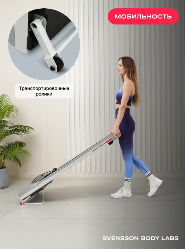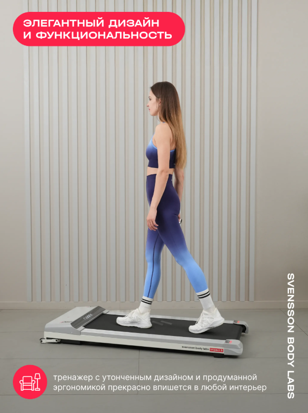 Svensson Body Labs IMPACT B — беговая дорожка, воплощающая стиль и технологии в новом светлом монохромном дизайне. Эта модель создана для домашних тренировок, сочетая современный минимализм, комфорт и надежность. Она идеально впишется в любой интерьер и станет надежным спутником на пути к здоровому образу жизни.