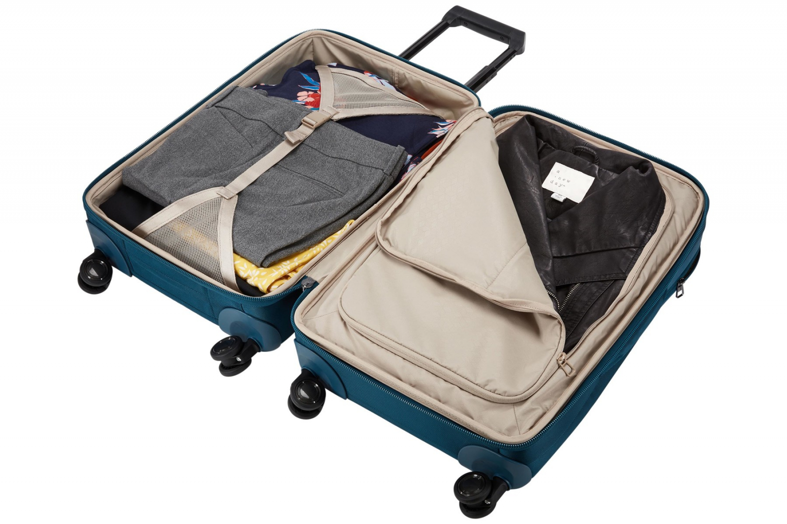 Благодаря уникальной конструкции чемодан полностью раскрывается, что обеспечивает доступ к каждому отделению и позволяет удобно и организованно упаковывать вещи