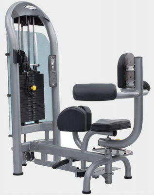 Торс-машина для использования в тренажерных залах. Регулировка стартовой позиции в пределах 10 градусов. Расположение точки вращения исключает включение в работу посторонних групп мышц. Уникальная конструкция поддержки предплечий. Наличие поддержки ног для сохранения равновесия в процессе работы. Биомеханически верная траектория движения. Защита весового стека акриловым щитом.