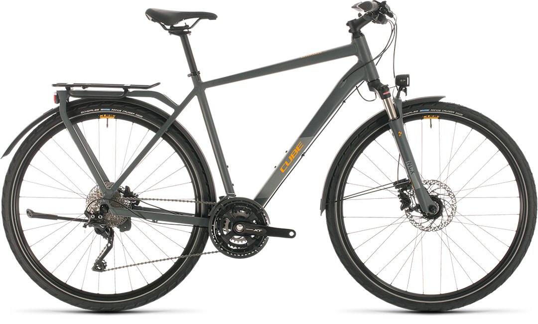 Дорожный велосипед класса туринг с оборудованием профессионального класса Shimano, 30 скоростей. Технические особенности: алюминиевая рама Aluminium Superlite Trekking Comfort IC 2.0 Double Butted, амортизационная вилка SR Suntour NCX D LO Air, двойные обода CUBE EX21, дисковые гидравлические тормоза Shimano BR-MT500, длинные крылья, багажник, система освещения, подножка. Подходит для туристического и прогулочного катания по шоссе и ровным проселочным дорогам.