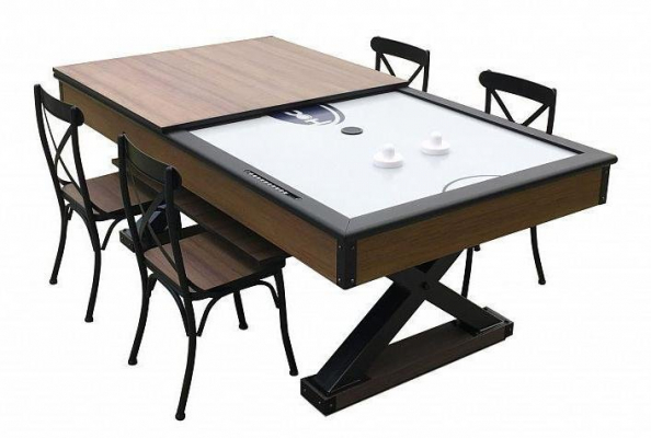 Аэрохоккей «Superior» это полноценный игровой стол с мощными характеристиками, а также стильная деталь интерьера. Чтобы приступить к трапезе, просто положите столешницу и накрывайте на стол. 4 стула «Superuior», входящие в комплект позволят расположиться с комфортом. А если захотели поиграть, снимите ее и наслаждайтесь партией!Стол покрыт сверхпрочным HPL пластиком, что обеспечивает отличную износостойкость.Вот его основные преимущества: