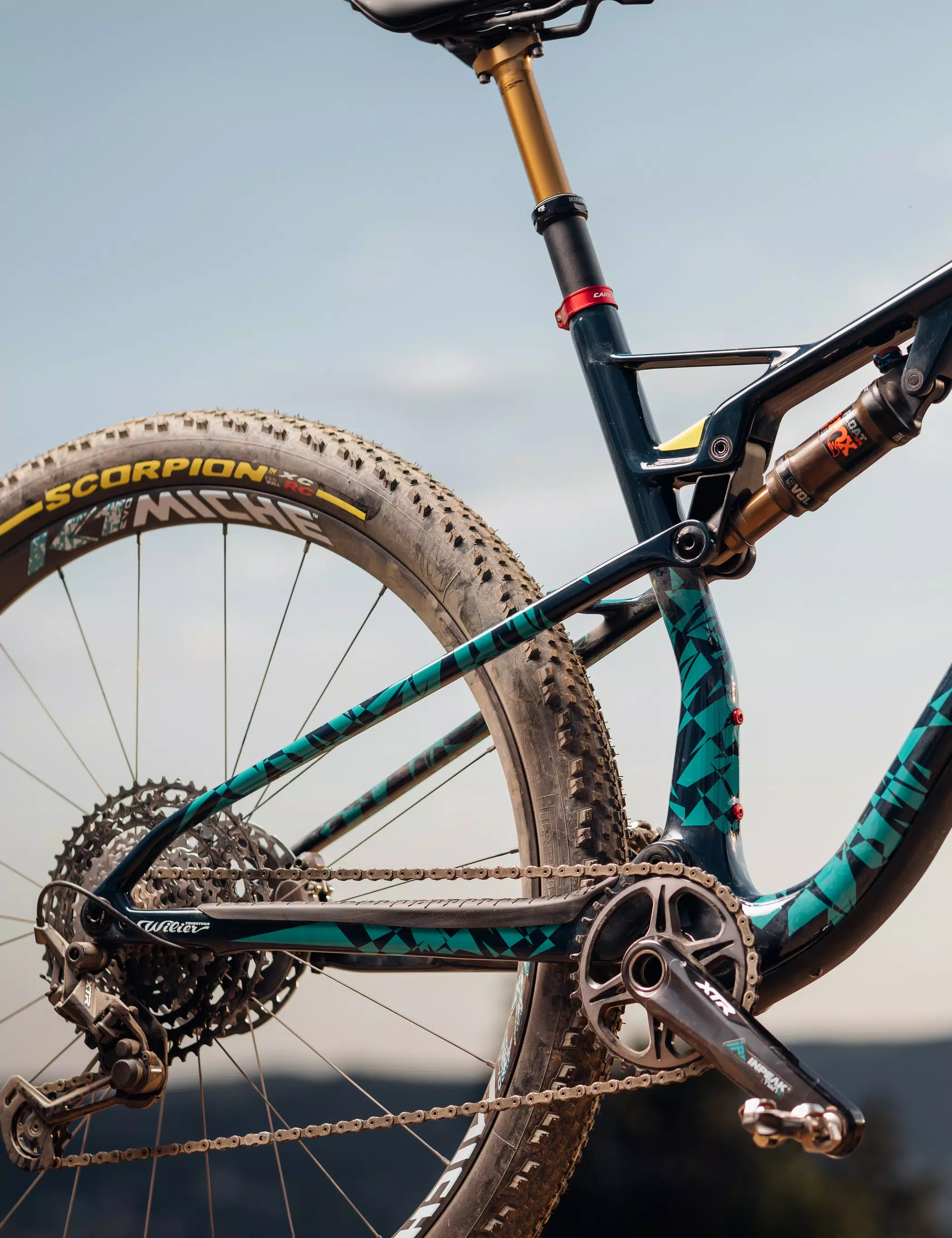 Задние амортизаторы Rock Shox и Fox с ходом 45 мм, которые устанавливаются в стандартной комплектации, имеют кривые сжатия, специально адаптированные для работы в симбиозе с передаточным числом рычагов, выбранным на этапе проектирования.
