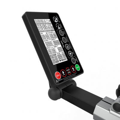 Консоль подходит для HIIT. На дисплее отображается уровень сопротивления, время, расстояние, калории, об/мин, мощность, скорость, ЧСС. Функция Smart Connect (Bluetooth и ANT +) позволяет пользователям подключать различные сторонние ресурсы.